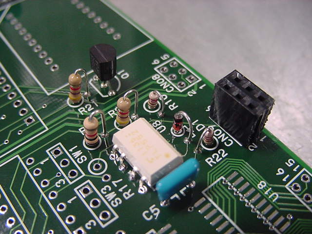 ゼロから回路を手配線するにはちょっと時間が苦しいが、さすがのオリジナル汎用実験試作基板である。 以下のように、必要な部分だけに限定して部品を搭載して、無事に、昨日のプログラム「mamiko01.spin」が走る、 MIDI入力とLEDを24個、というPropellerシステムが2時間ほどで完成した。(^_^)