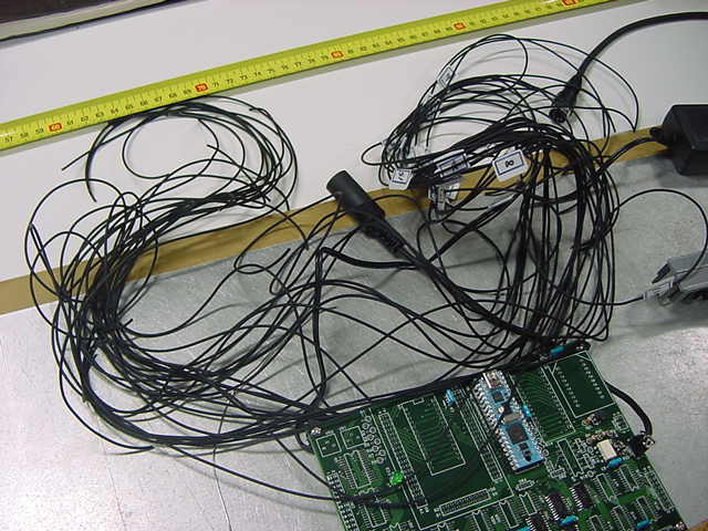 この4マウス・インターフェースのシステムも、ちゃんとSUACマルチメディア室のロッカーに動態保存しているので、 メディア造形学科の後輩などは、これをブラックボックスのインターフェースとして活用した作品の制作に、 簡単にチャレンジできるのである。 そのために、ここでこのシステムについてのドキュメントも整理しておくことにした。 いろいろ発掘した結果、以下の資料があった。
