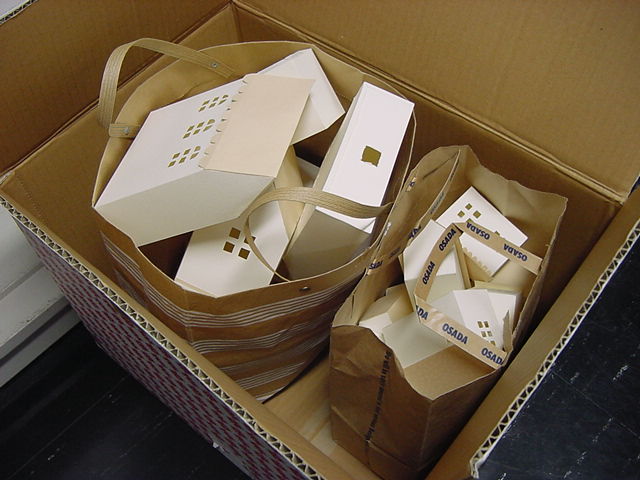 それは、 SUACインスタレーション(2) の最後のあたり、「はやくスシになりたい」と「おはなしパネル」という、 現在でも動態保存していろいろな場で展示している作品に続く、 見崎さんの「OTOkakecco」である。以下にその記録を再録しておこう。