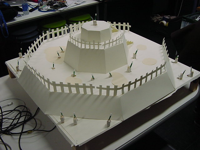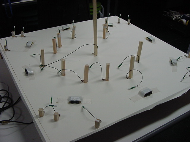 3回生の望月さんのインスタレーション作品について、昨日に続いて今日もアポがあって一緒に相談した。 昨日の段階で、豆電球でなく「電球色(橙色)」のLED、と方針が決まってさっそく業者に発注した。 こちらも藤本さん作品と同様に、パソコン無しのスタンドアロンにしたい、との事なので、 まずはコンピュータはArduino、という方針となった。そして、作品を囲む体験者のセンシングには、過去に以下の1期生の作品その他で活躍した、 赤外線近接センサを並べることにした。
