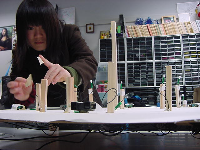 - 概要 4人がそれぞれのマウスを同時に操作して行うFLASHゲーム。画面内にランダムに出現する音符をそれぞれのマウスに対応した自分のアイコンで競って捕獲する。卒業制作として人間自身が体感するゲーム(画像認識を利用)インスタレーション作品を制作するためのプログラミングの練習として、専用の「4マウスインターフェース」を利用して制作した