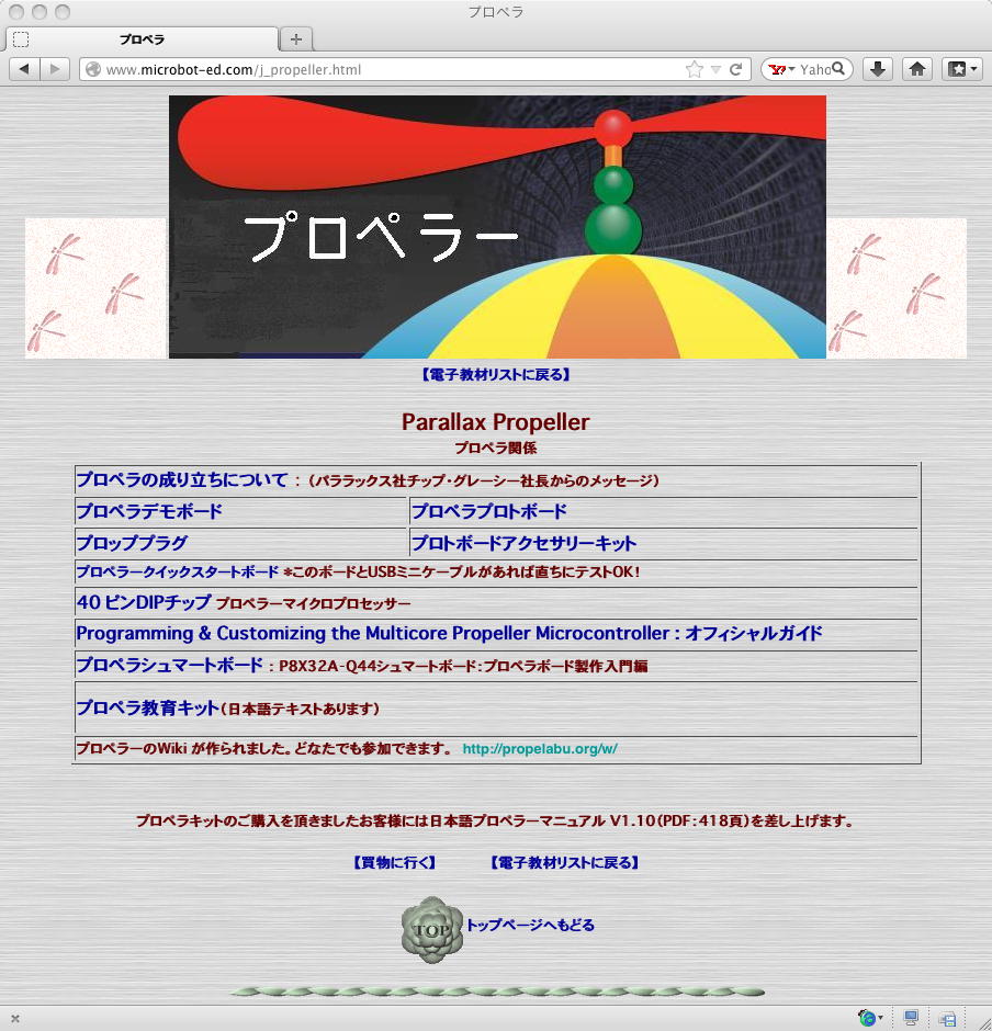 これまで、国内では上の 日本マイクロボット教育社 しかPropeller関係を扱っていなかった。 教育あたりをターゲットとしている地味で無名な会社であるが、ここだけが米国から取り寄せずに入手できるルートだった。 ただし去年あたりは、その在庫も一部で切れていた。