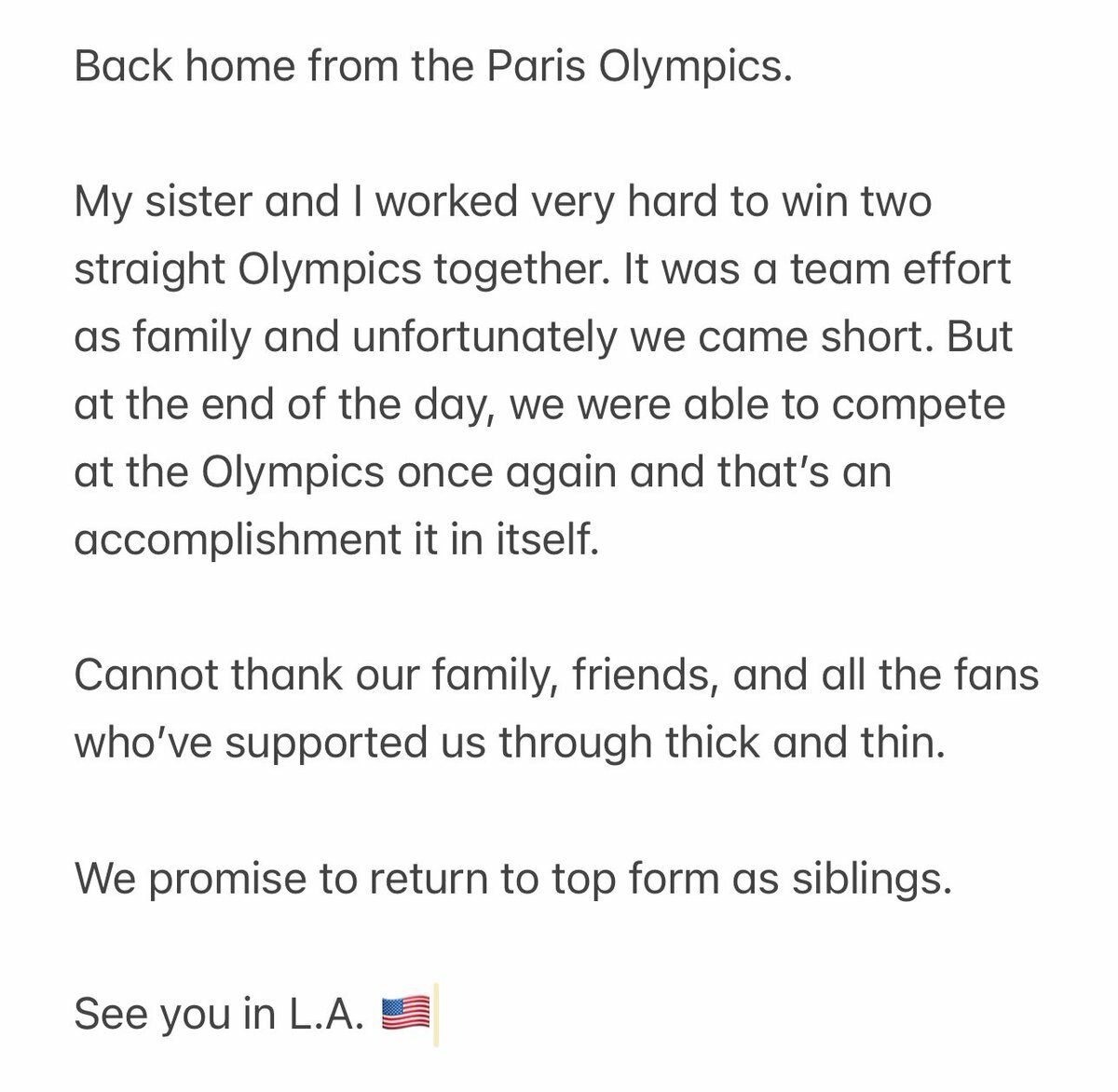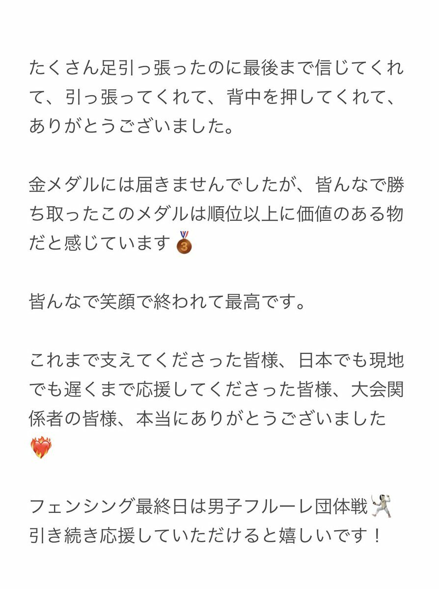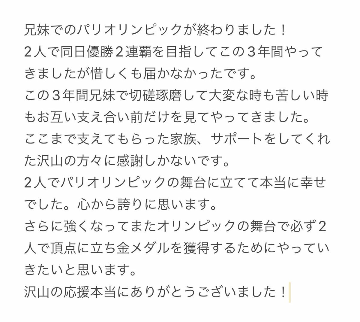パリオリンピック 競技が終了した選手らの「応援ありがとう」コメント