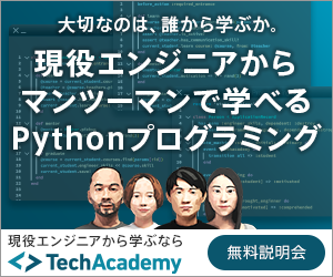 なお本記事は、TechAcademyのオンラインブートキャンプPython講座の内容をもとに紹介しています。