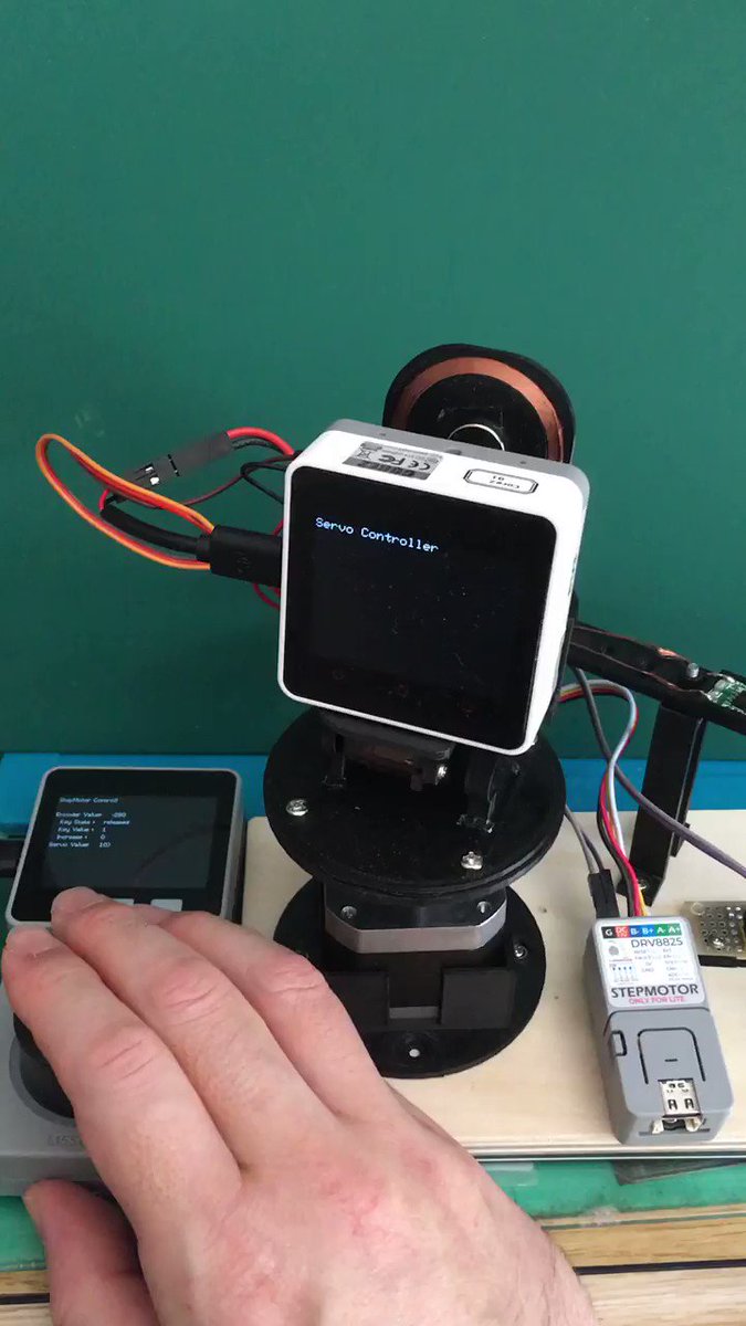 マウザーエレクトロニクス@MouserElecJapan·2021年4月15日小回りの利いた動きです ステッピングモーターとサーボモーターを利用した2軸ジンバルをM5Stack製品で制御 ESP-NOWを使い3つのM5Stack製品を連携しています 紅樹 タカオ(@mongonta555)さん、ありがとうございます! ▼電子工作はMouserで https://mou.sr/site-jp33