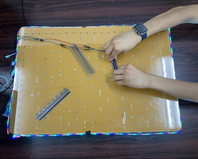 生体計測デバイスとアクリルと光で作る作品