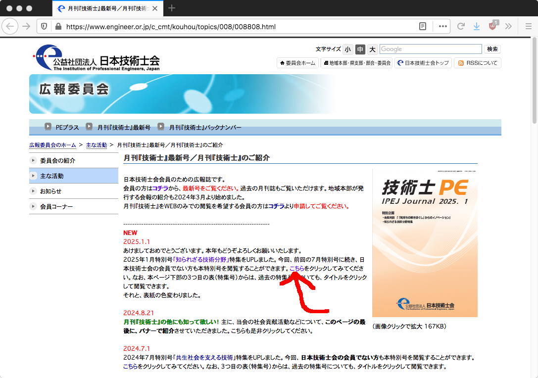 日本技術士会のページに行ってみると、上のように会報「技術士」に寄稿した原稿(なんとカラー版)だけでなく1月号全部が、会員でなくてもゲット出来るようになっていた。 ただし、おそらく オリジナル はいずれ消えてしまうだろうから、とりあえず ローカル にも置いてみた。 こういうのを永続的に公開していた方が「社会に貢献」したことになると思うのだが、まぁいろいろ大人の事情で続かないのだろう。
