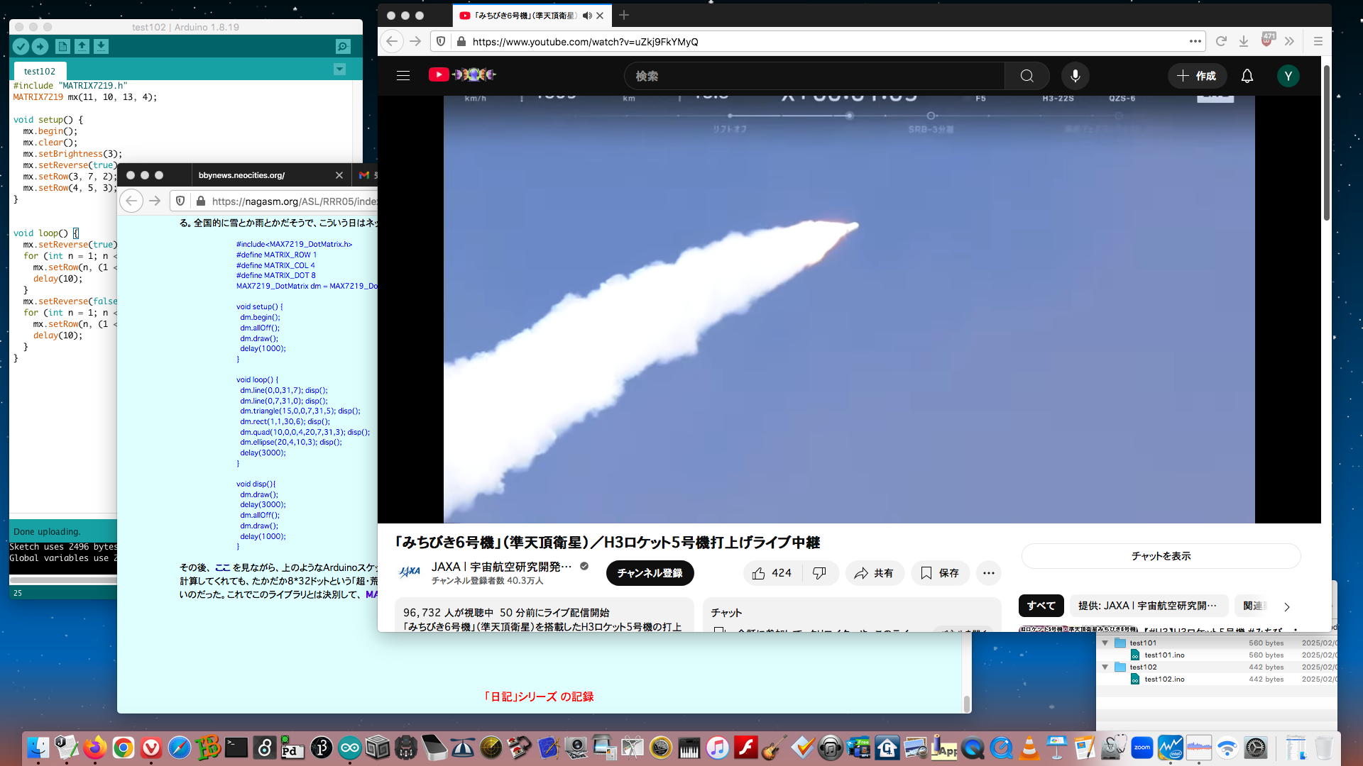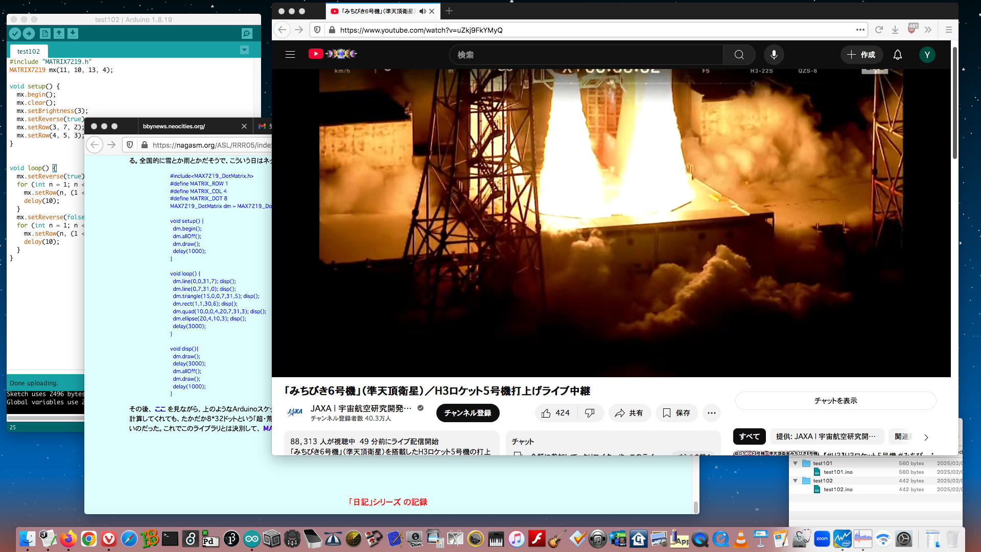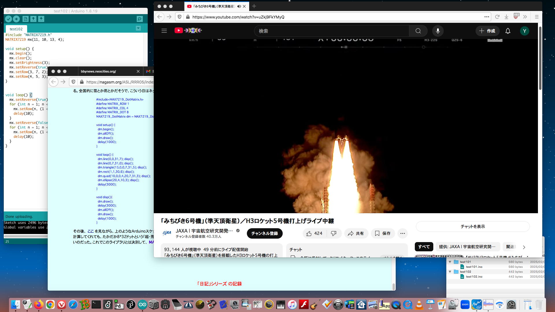 そしてこの日記(RRR日記[5])の「2025年1月5日(日)」のところには、それらをまとめて改良した YouTube動画 と、それぞれのArduinoスケッチが置かれていた。 さらにこの日記(RRR日記[5])の「2025年1月9日(木)」のところには、白木マトリューミンにシステムを入れて音楽演奏に挑戦した YouTube動画 も置かれていた。 まったく未熟/未完成であるものの、これが現在の最新形であり、これらも「Arduinoの活用例」としては使えるために、ここにメモしておくことにした。[8] LEDtape_Shooting