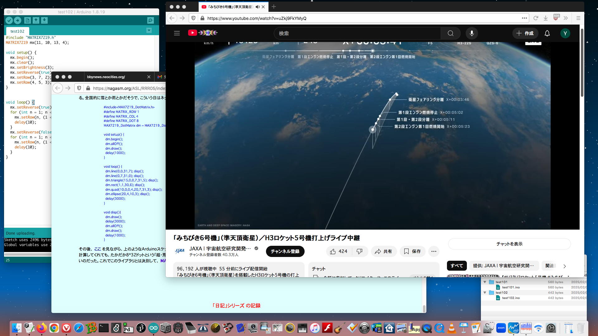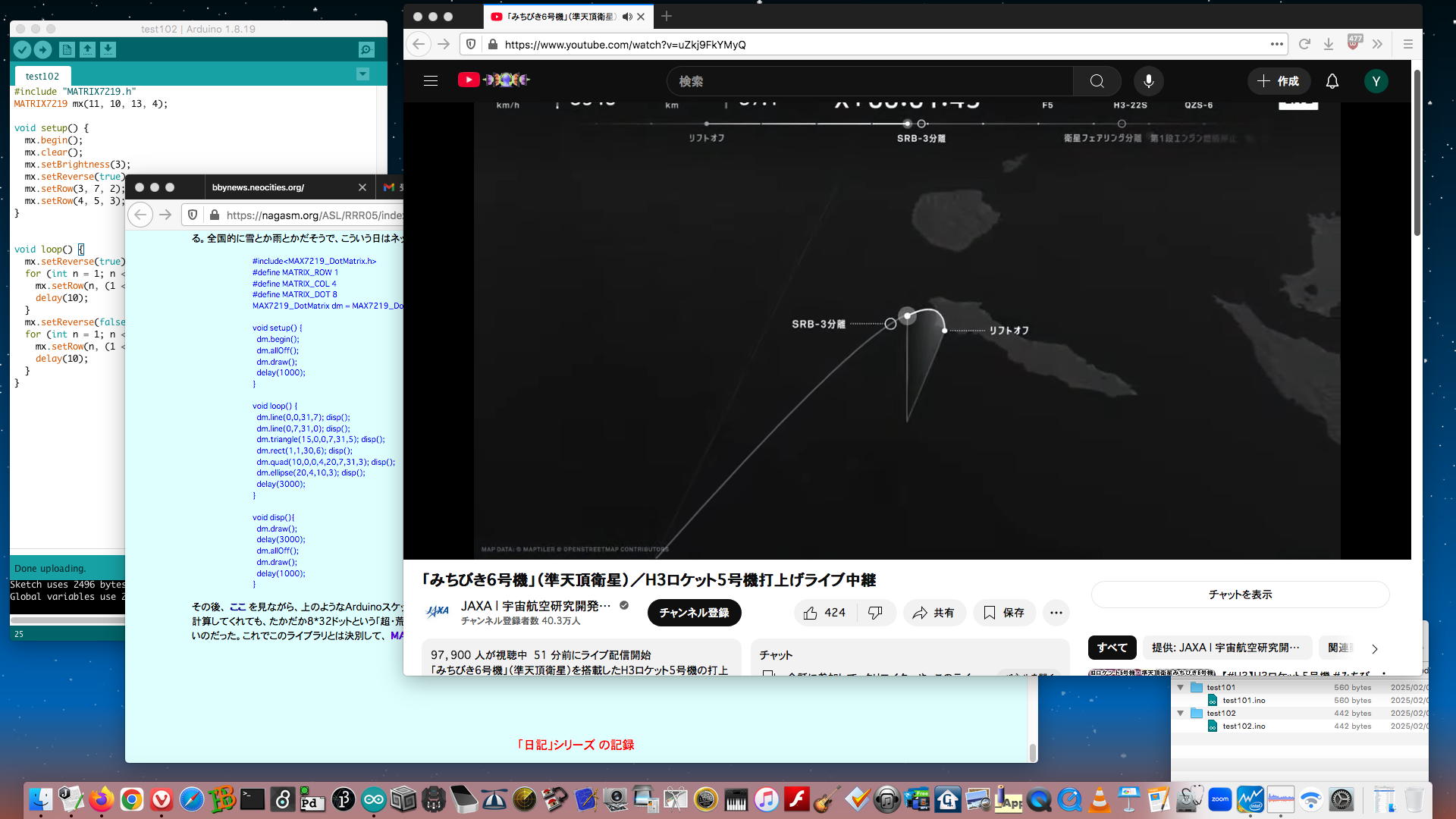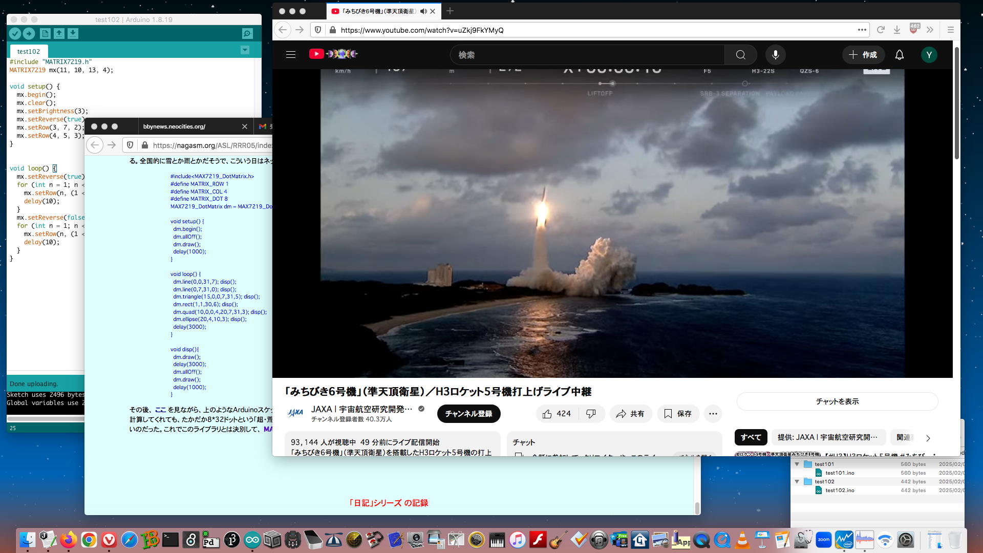 そしてこの日記(RRR日記[5])の「2025年1月5日(日)」のところには、それらをまとめて改良した YouTube動画 と、それぞれのArduinoスケッチが置かれていた。 さらにこの日記(RRR日記[5])の「2025年1月9日(木)」のところには、白木マトリューミンにシステムを入れて音楽演奏に挑戦した YouTube動画 も置かれていた。 まったく未熟/未完成であるものの、これが現在の最新形であり、これらも「Arduinoの活用例」としては使えるために、ここにメモしておくことにした。[8] LEDtape_Shooting