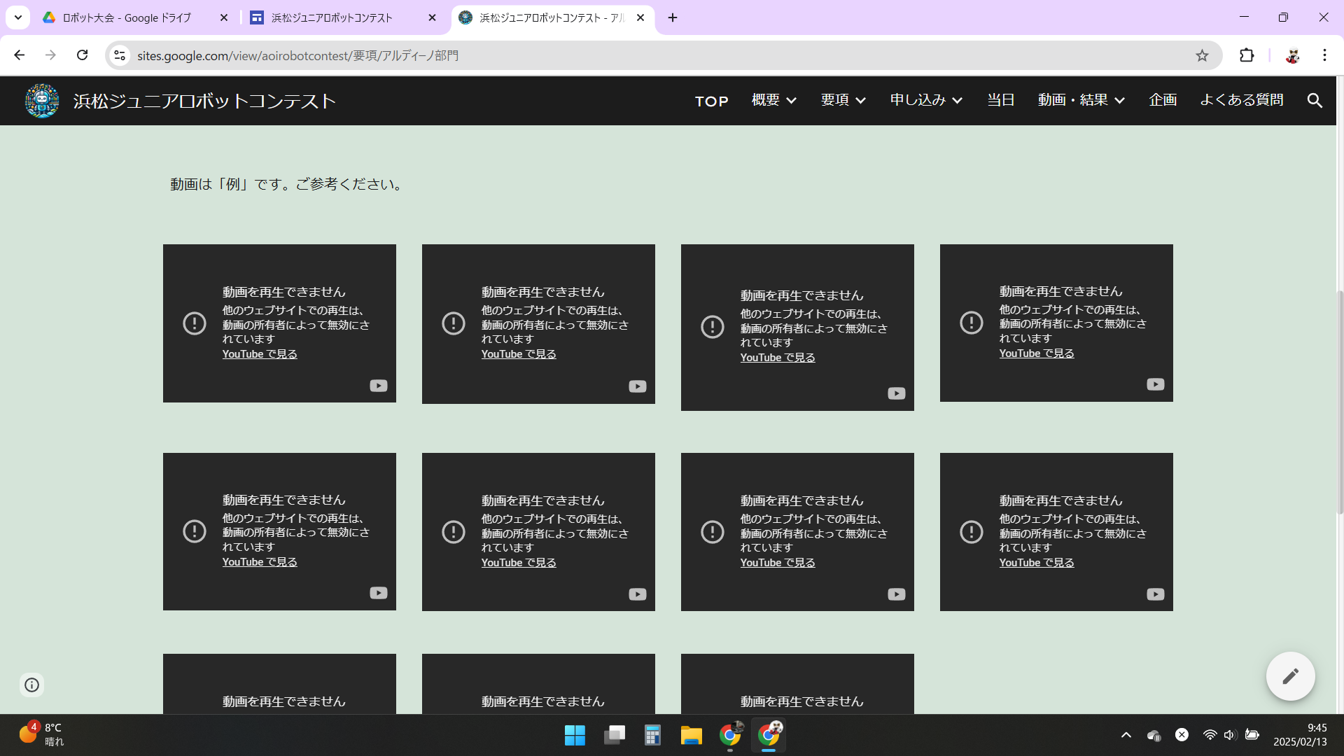 昨日のJoyJoyヒトカラでは6時間で64曲を完走した。 そして、昨日に10本(Arduinoテルミンを入れると11本)のサンプル動画情報が出揃ったので、ロボット教室の事務局に送ったところ、「以下のように駄目です」とのメイルが来た。