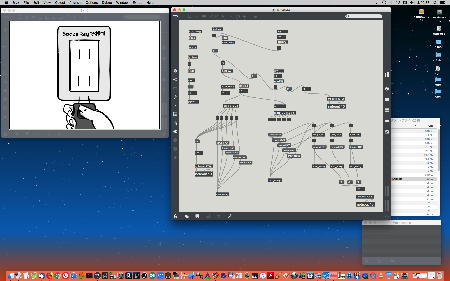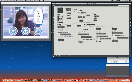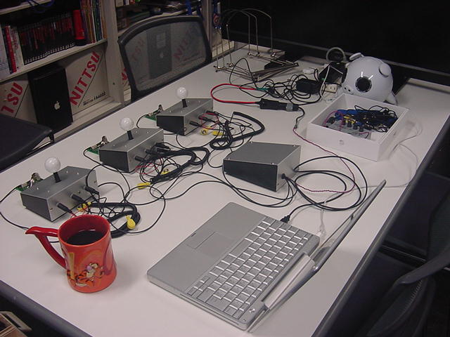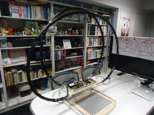 2013年の8月15日には、 このように チーム「しゃみーず」のインスタレーション作品のSUAC公式記録が、撮影スタジオで行われていたようである。 このシステムは電源こそACアダプタで送っているものの(電池駆動もOK)、センサ出力はちゃんとWiFiでワイヤレス伝送しているのだった。