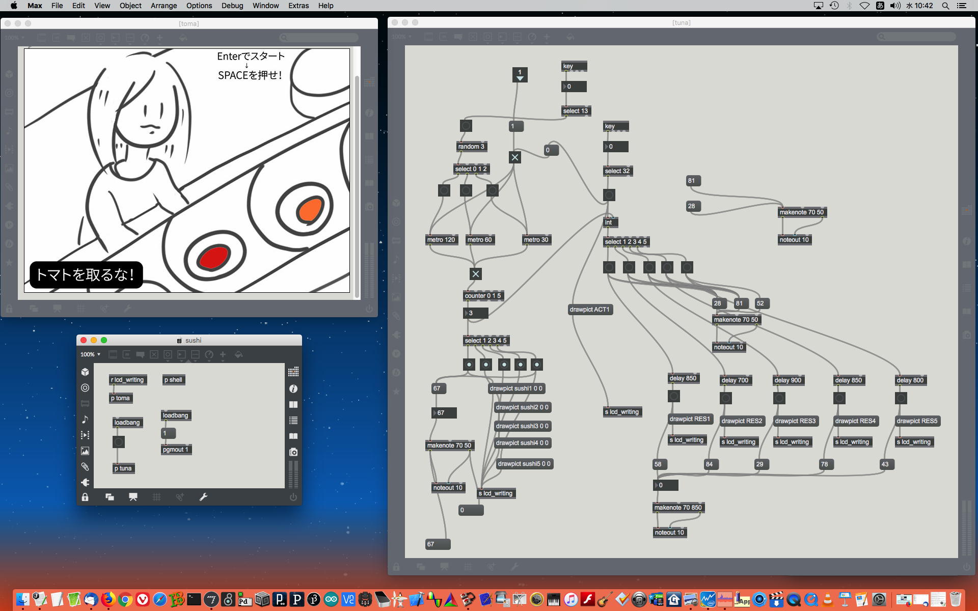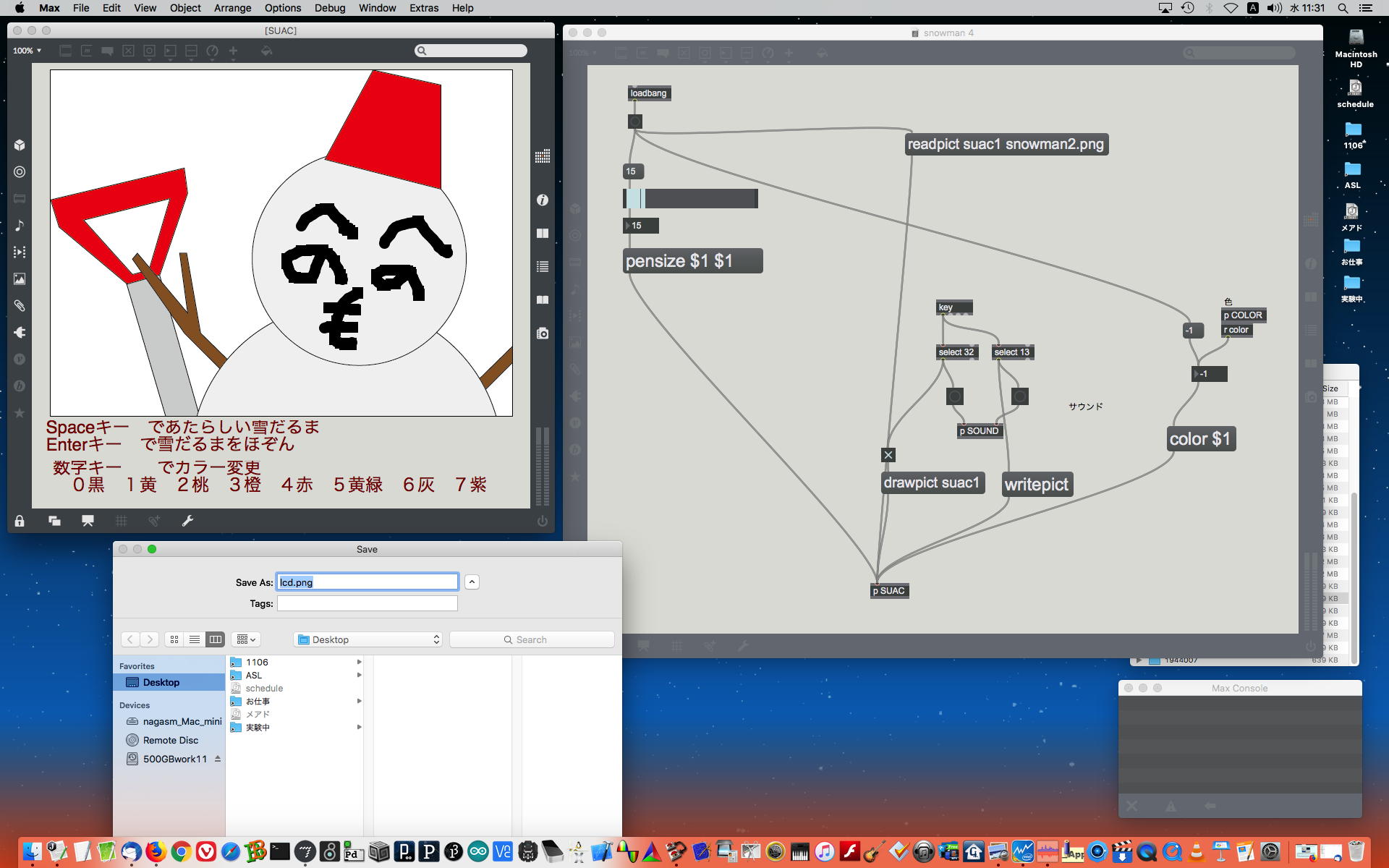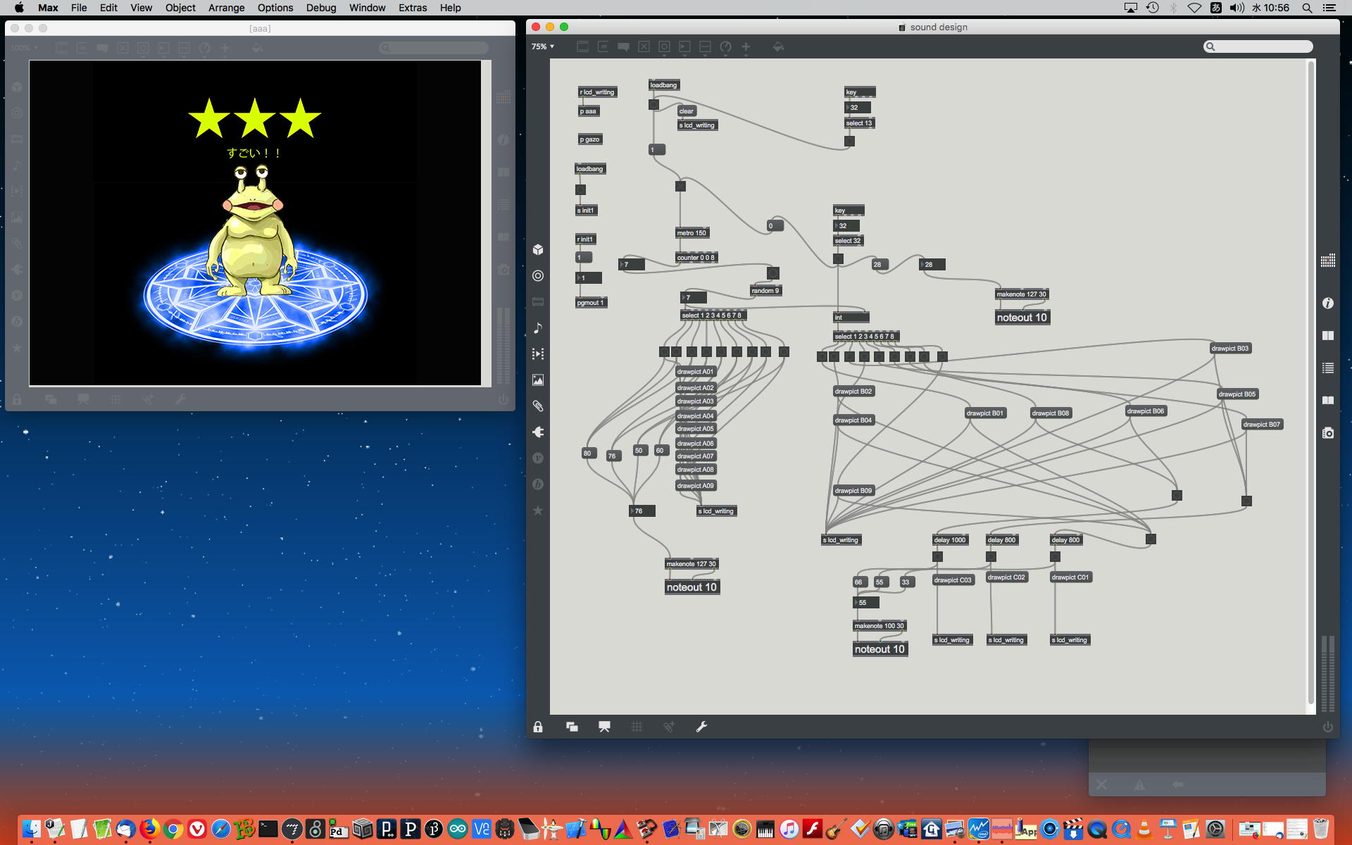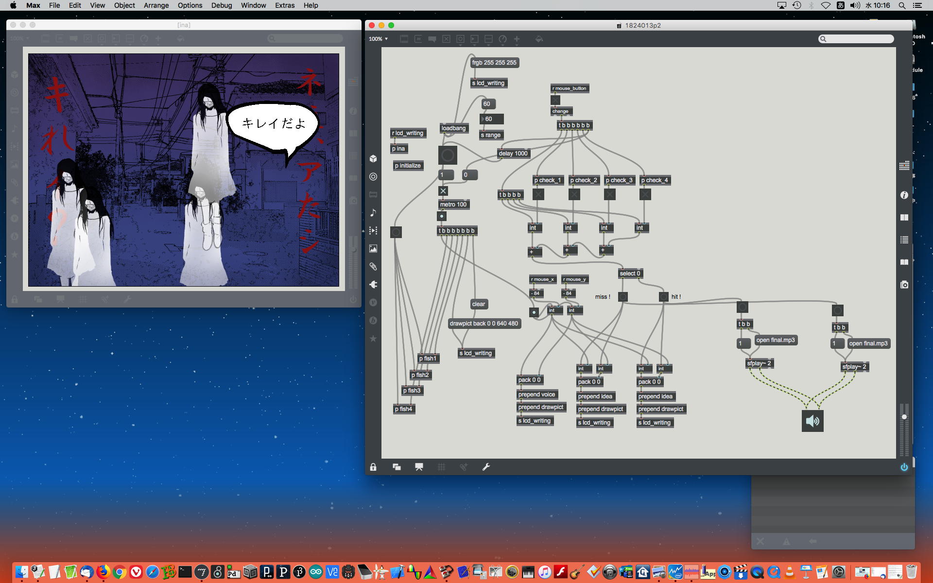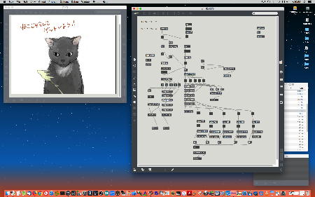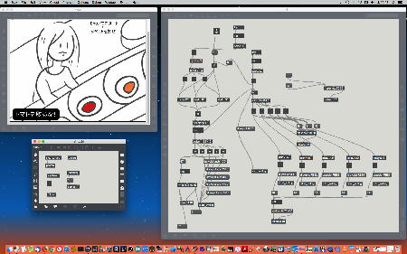 2023年には、 Sketching日記(18) の翌日の「2023年8月16日(水)」によれば、12月に開催された Final Lecture/Workshop by YN の枠組みがおよそ完成したようで、さらに上のように、院生の王さんの研究に関しての実験(SuperColliderとMaxとの連携)も進めていた。