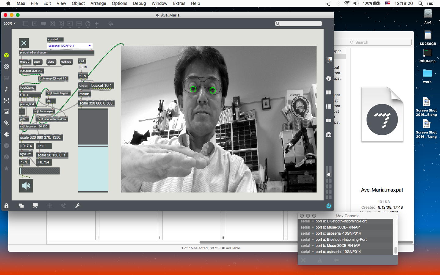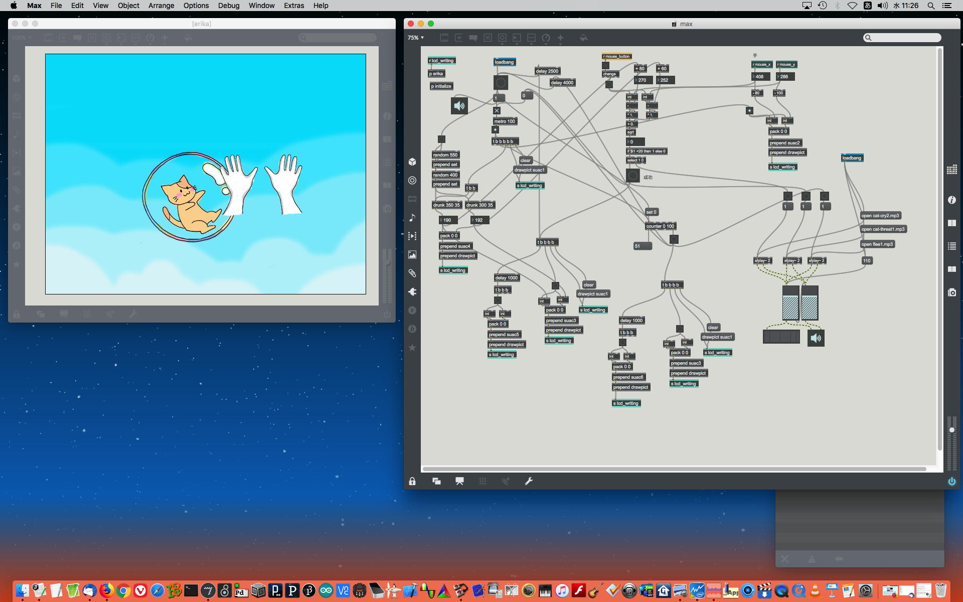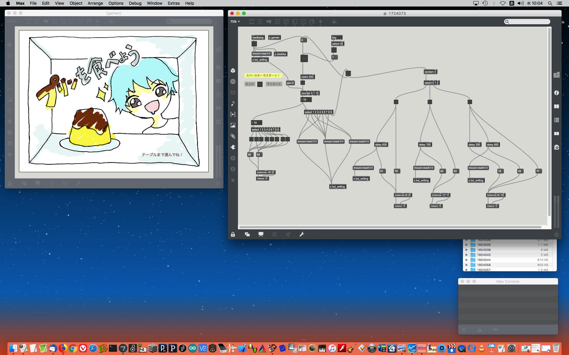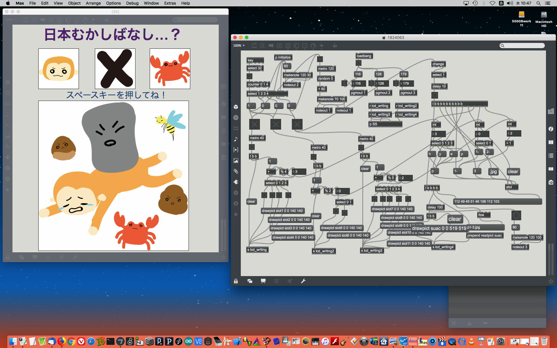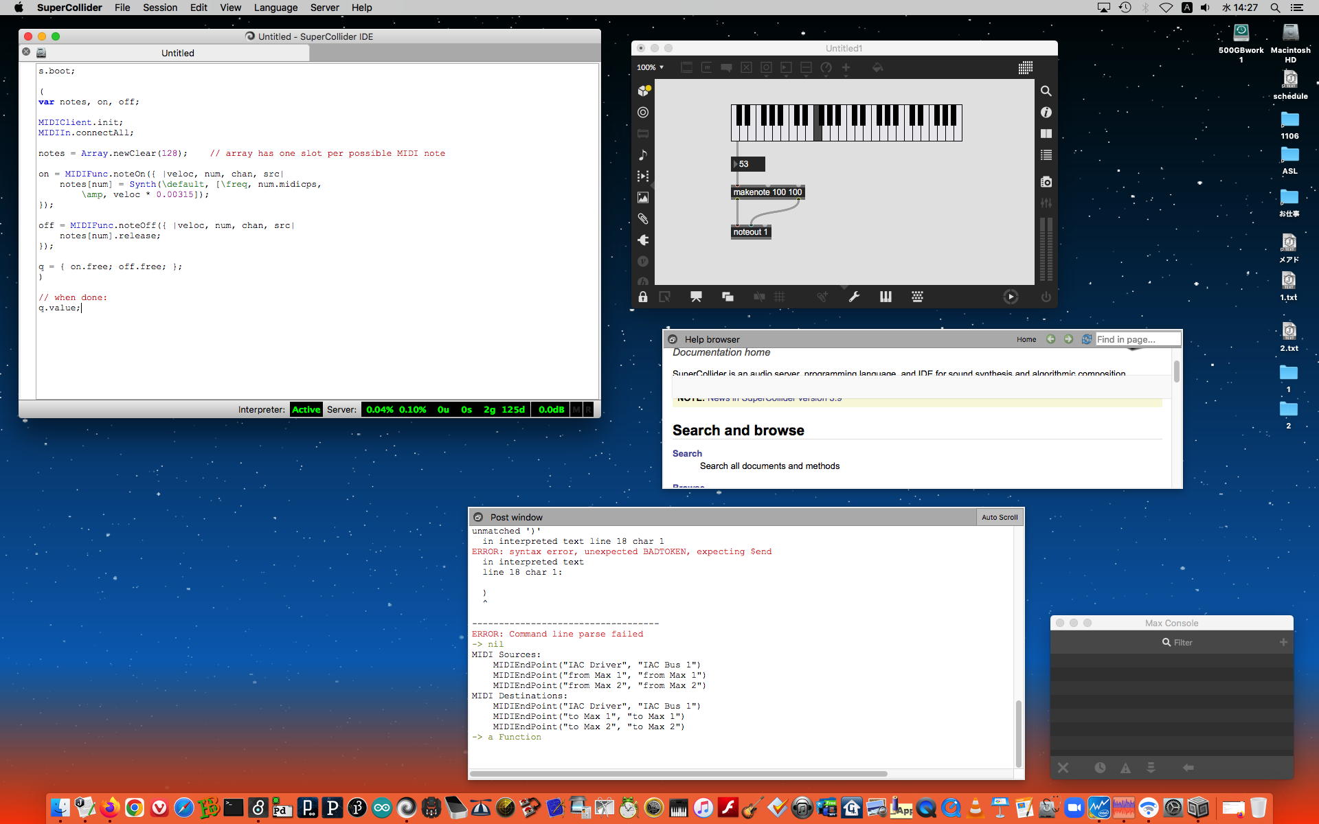 2023年には、 Sketching日記(18) の翌日の「2023年8月16日(水)」によれば、12月に開催された Final Lecture/Workshop by YN の枠組みがおよそ完成したようで、さらに上のように、院生の王さんの研究に関しての実験(SuperColliderとMaxとの連携)も進めていた。
