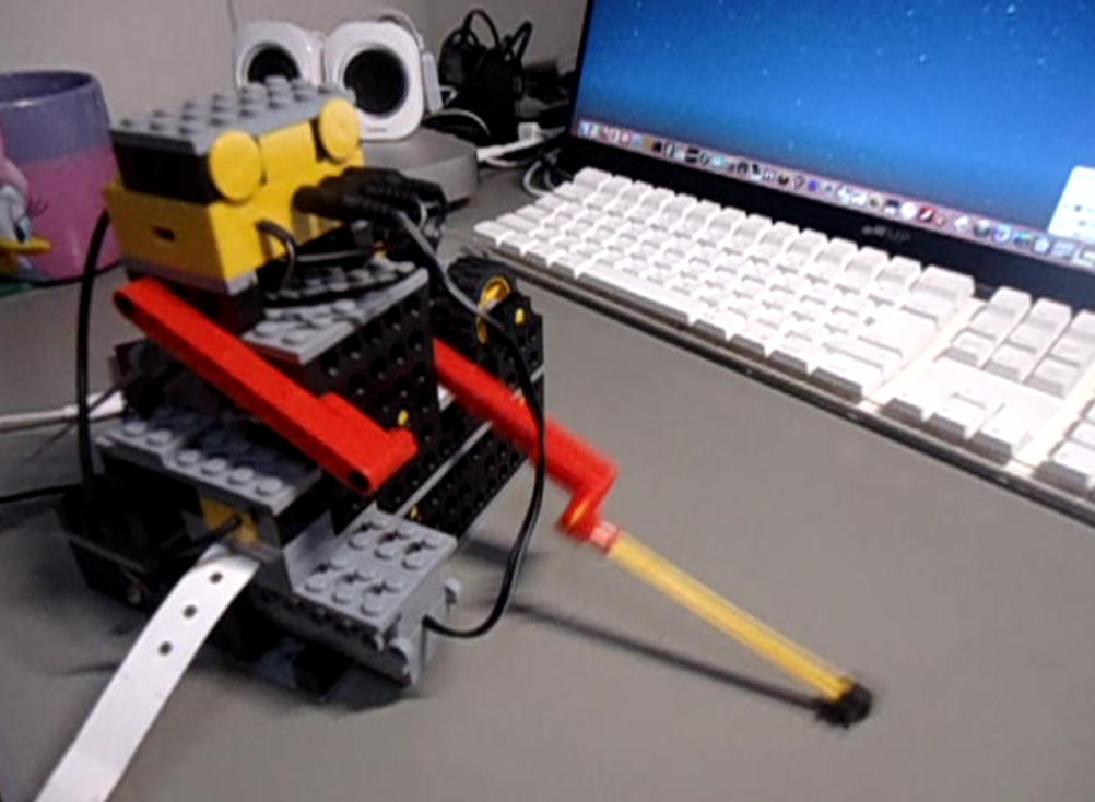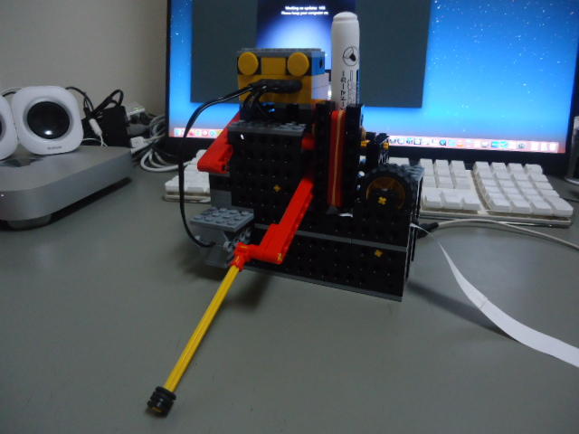 一昨日の王位戦は「ひふみんアイ」によれば「対局場の相性の悪さ?藤井王位の作戦はやる気が起きない」とのことで、久しぶりにボロクソだった。 その日のロボット教室RP2では、 こんな感じ にロボットアームの先端に付けたペンで「何かを描かせて」みた。