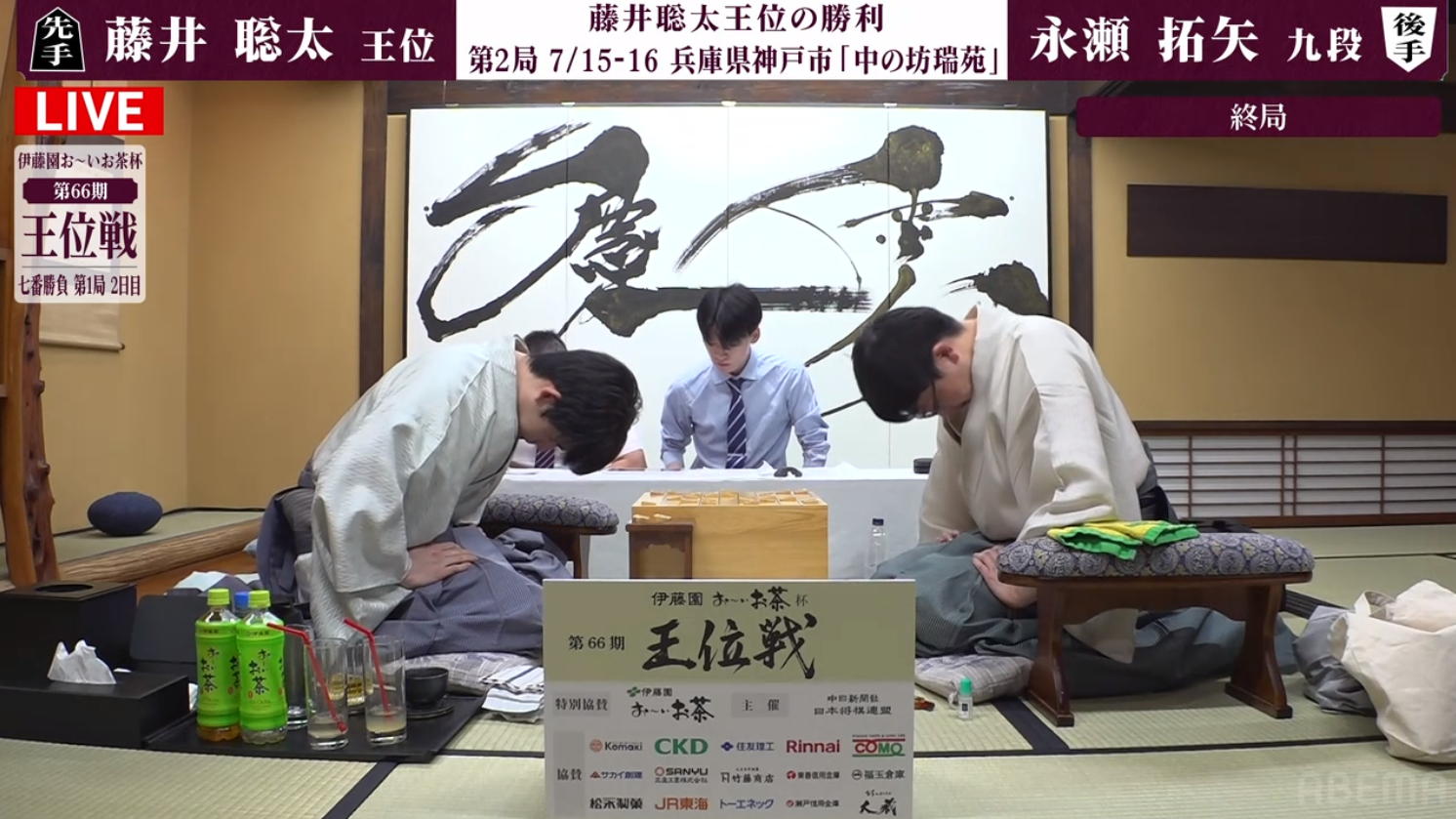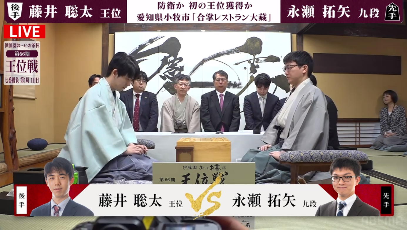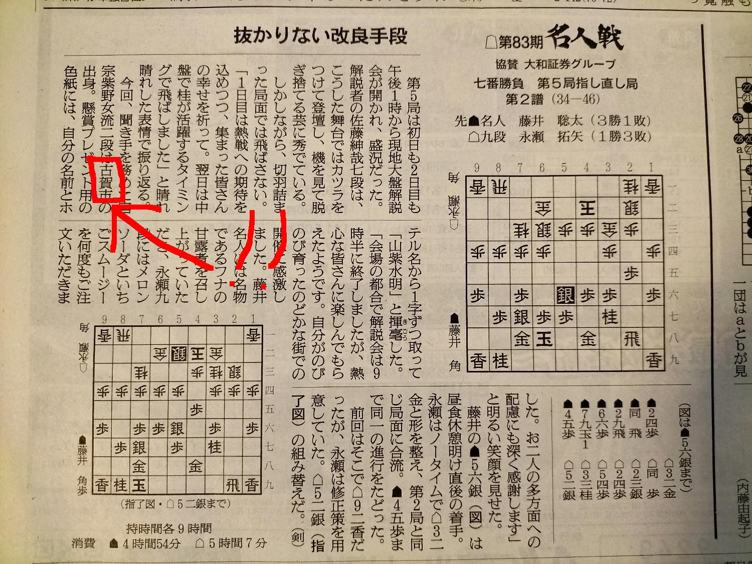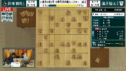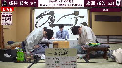 そして対局開始となった。 先手永瀬、後手藤井、戦型は角換わりということで、どうせこの二人だとこの午前中は遅々として放送事故のような画面になる・・・と思っていたら、サクサクサクサクどんどん進んで、たった1時間で47手になってしまった。 これで2日間、指し続けられるのだろうか。