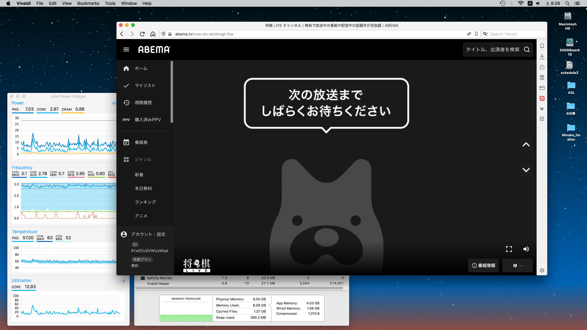 今日は王位戦第1局(明日まで)、朝イチでライヴ中継直前から待機したのが上の風景である。 今日は午後にロボプロRP1の初日があるので、まぁ昼過ぎまではこのサブ画面はずっとAbemaTVとなるだろう。