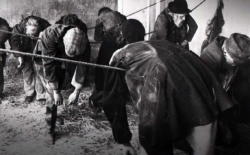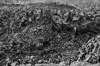 キャプションが無ければ単なる密集墓地であり、墓地バージョンとしては、コロナの頃、さらには最近ではウクライナとかガザ地区とかで、こういう風景を見たような気がする。 そういう意味では21世紀になっても、人類は全く進歩していないのだと再確認した。