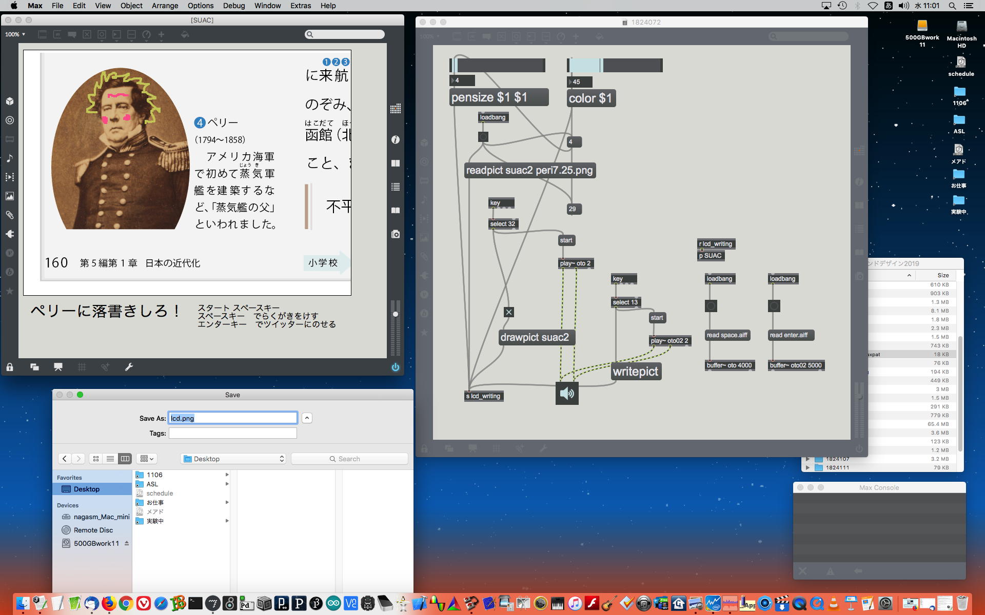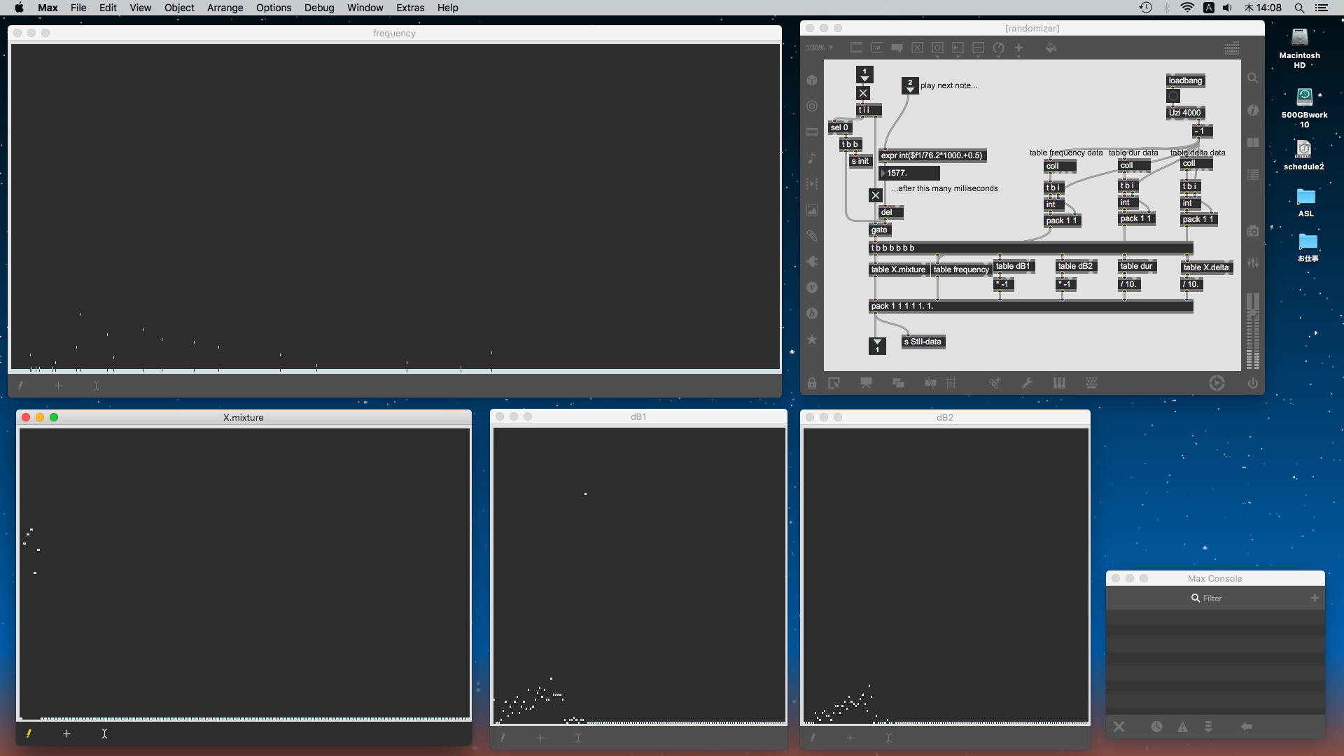 2014年は社会人博士として入学した年であり、 Max6日記(3) の「2014年8月15日(金)」のあたりでは、美学や哲学などを乱読していた。 さらに翌週からの 2014夏・国内ツアー の準備(「Firmata+Maxuino+LittleBits」のマスター)などで追われていたようである。