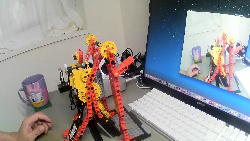 昨日のロボプロRP2では新発見があった。 月曜に僕がテキストに従って作った感じ(3時間以上かかった)では、「時間枠の120分ではとうてい出来ない?」という悲壮感があったのだが、無事に完成したのだ。 テキストが読みにくくて(図が見にくくて)あれこれ逡巡していた初見と違って、僕が段取りを把握していたために適切にサクサク進んだこと、ときにPCに戻ってサーボモーターの動作確認とか位置(角度)設定とかが必要な部分を生徒PCでなく僕のPCに分離したこと、などもあるが、勝因はこれとは別に2つあった。 一つは、小学生の頃からジュニアロボット教室に通い続けたこの生徒は非常に手慣れていて優秀なこと、そしてもう一つは「難所を二人で乗り切る」という部分にあった。 取り付けにくい位置のナットとビスの組み合わせとか、机に垂直に位置決めしてタッピングを強く押し込むとか、の作業をたった一人でやっていた僕に比べて、ごく一部ながら「ビスの先のナットをラジペンで固定」とか「机にパーツを保持してネジ止め作業を支持」とかのちょっとしたサポートが入ることで、細かい失敗が激減して、作業が順調に進んだのである。 まぁ、そういう難題を一人でやるのがロボット教室の先生のお仕事であり、楽しみなので、これは無問題なのだ。