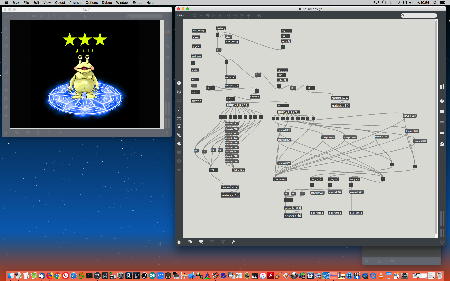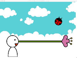 2005年には8/13から8/17まで5日間、ゼミの4人+1人を対象とした「夏休みFLASH特訓講座」をやっていた。 8月15日にはActionScriptの基礎をやり、この日のテーマはFlashムービーのLoaderの試作だったようで、5人がそれぞれFLASHのローディングタイマを実装していた。 上の作品は 二村さん のもの(Loaderのラストシーン)である。