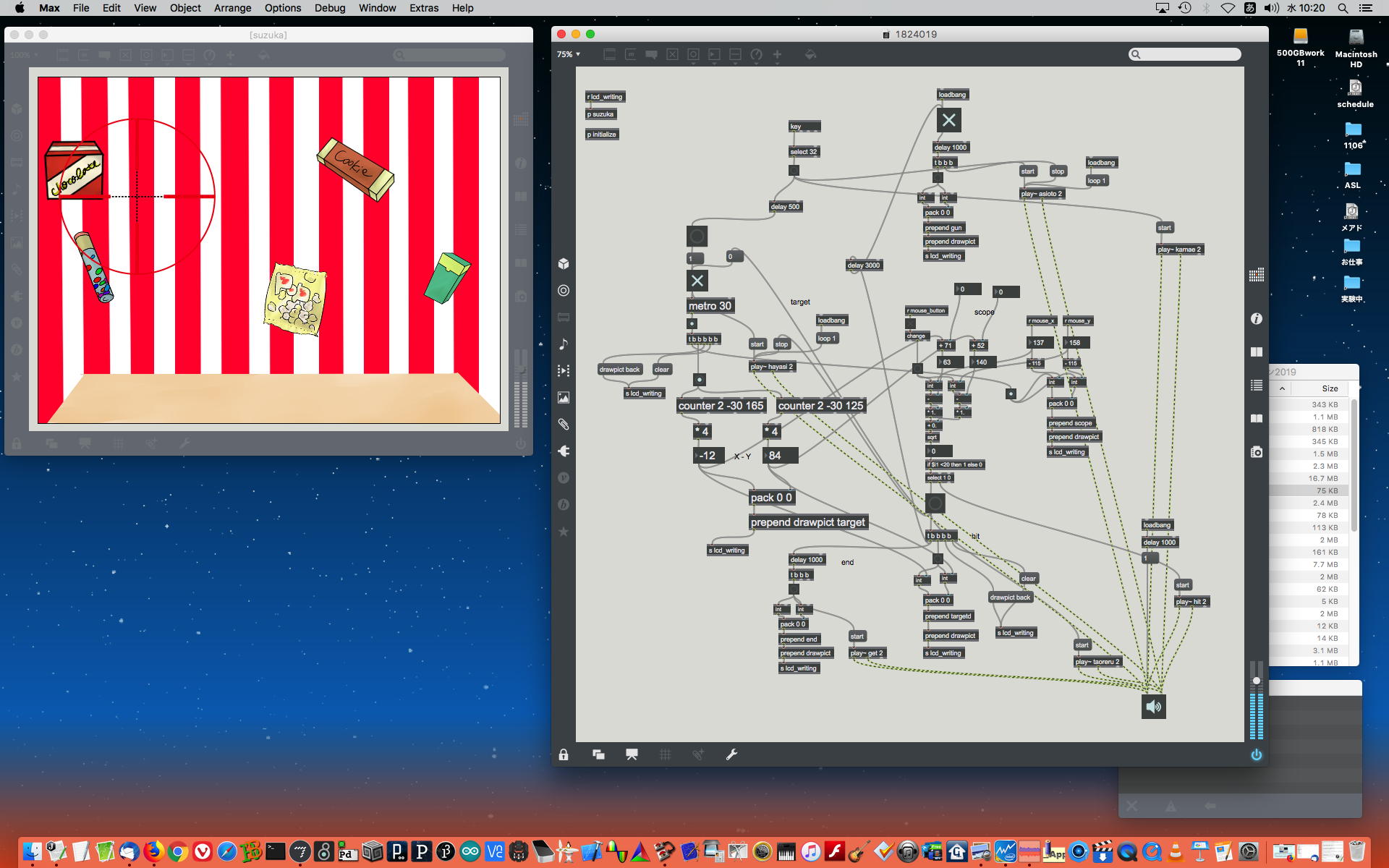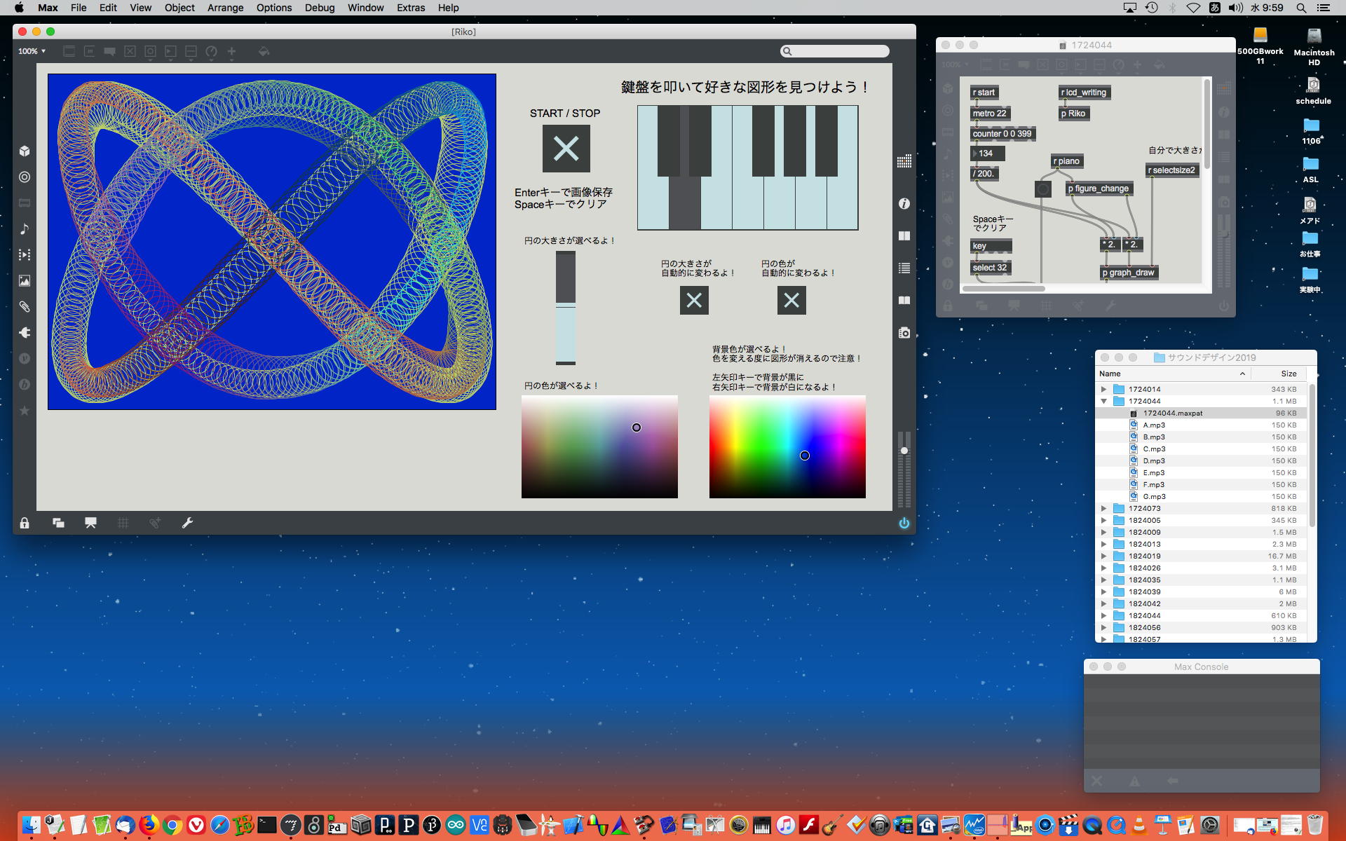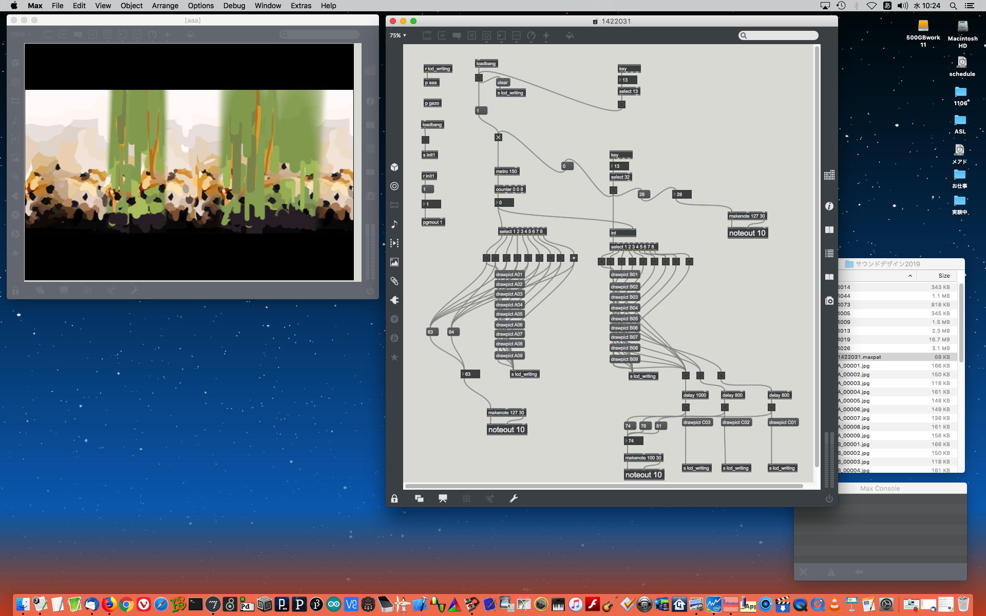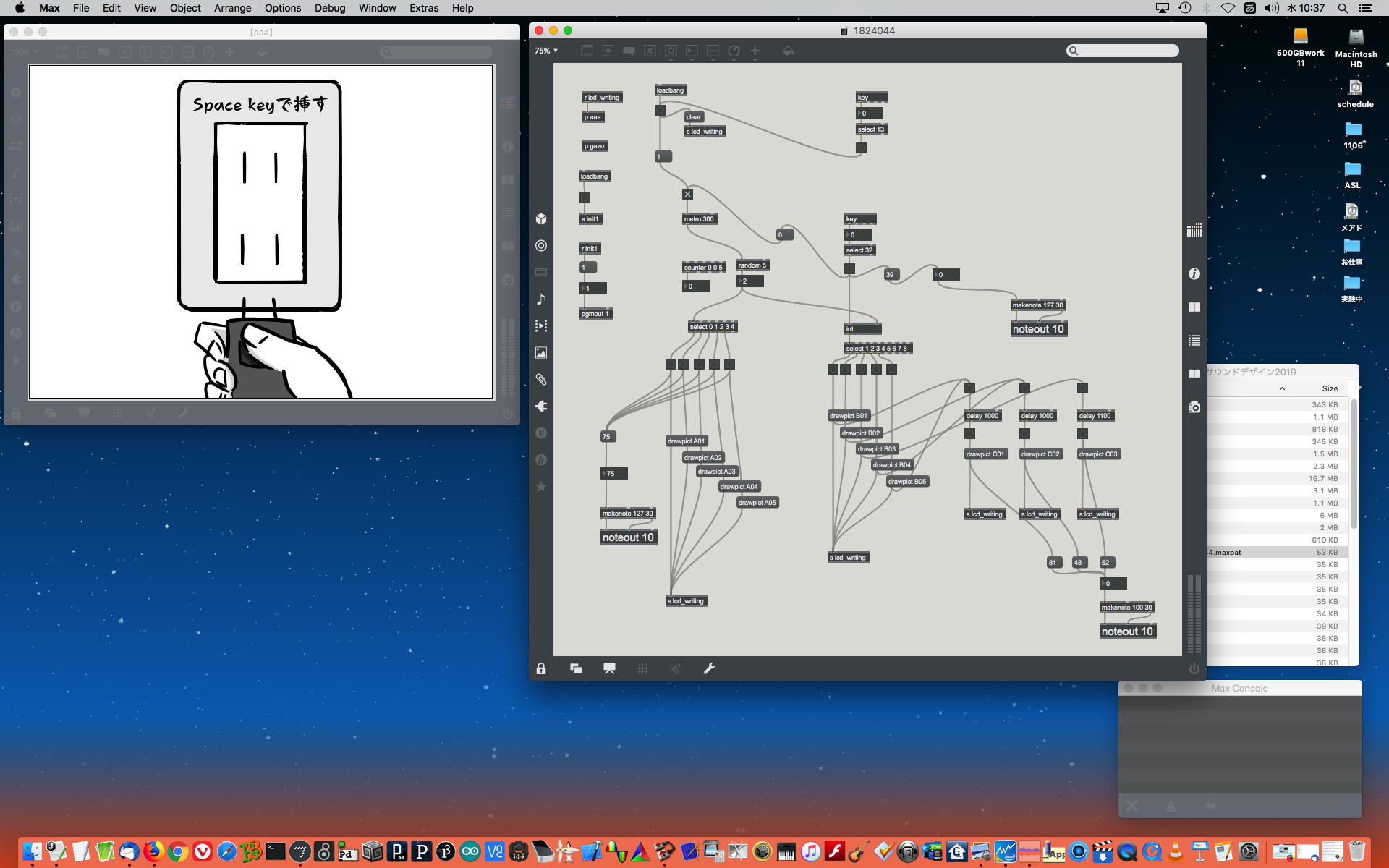 2019年には、 Sketching日記(2) の前日「2019年8月14日(水)」のところで、上のように「サウンドデザイン」課題として学生が制作したMaxパッチ作品の整理紹介をしていた。 この翌年にはCOVID-19によって前期の講義が全てリモートになる・・・なんて事は想像も出来ないのだが、これだけ充実してきたMax教育が翌年に途絶えたのはちょっと残念なことだった。