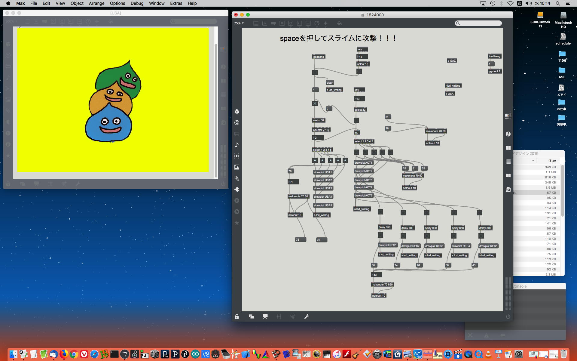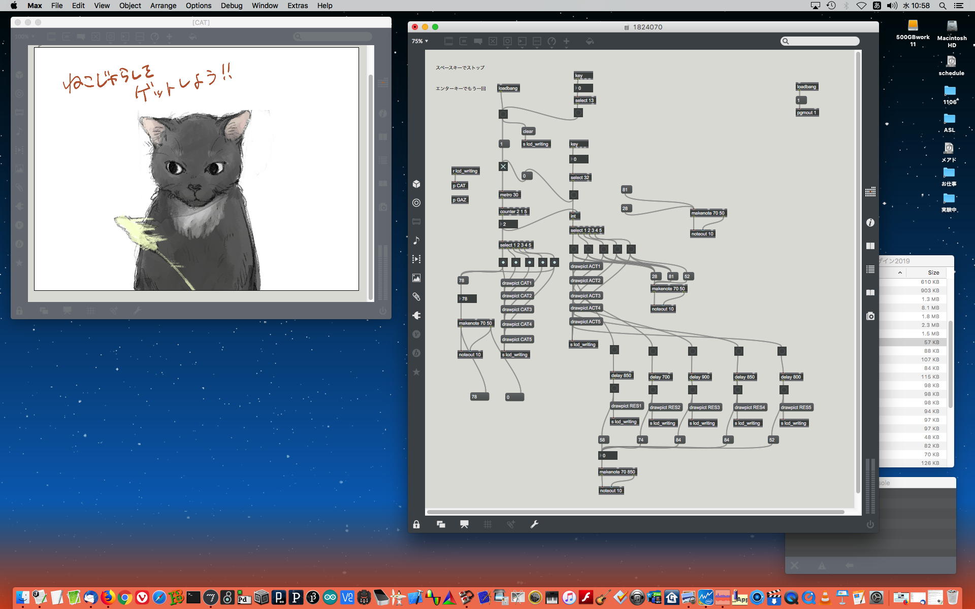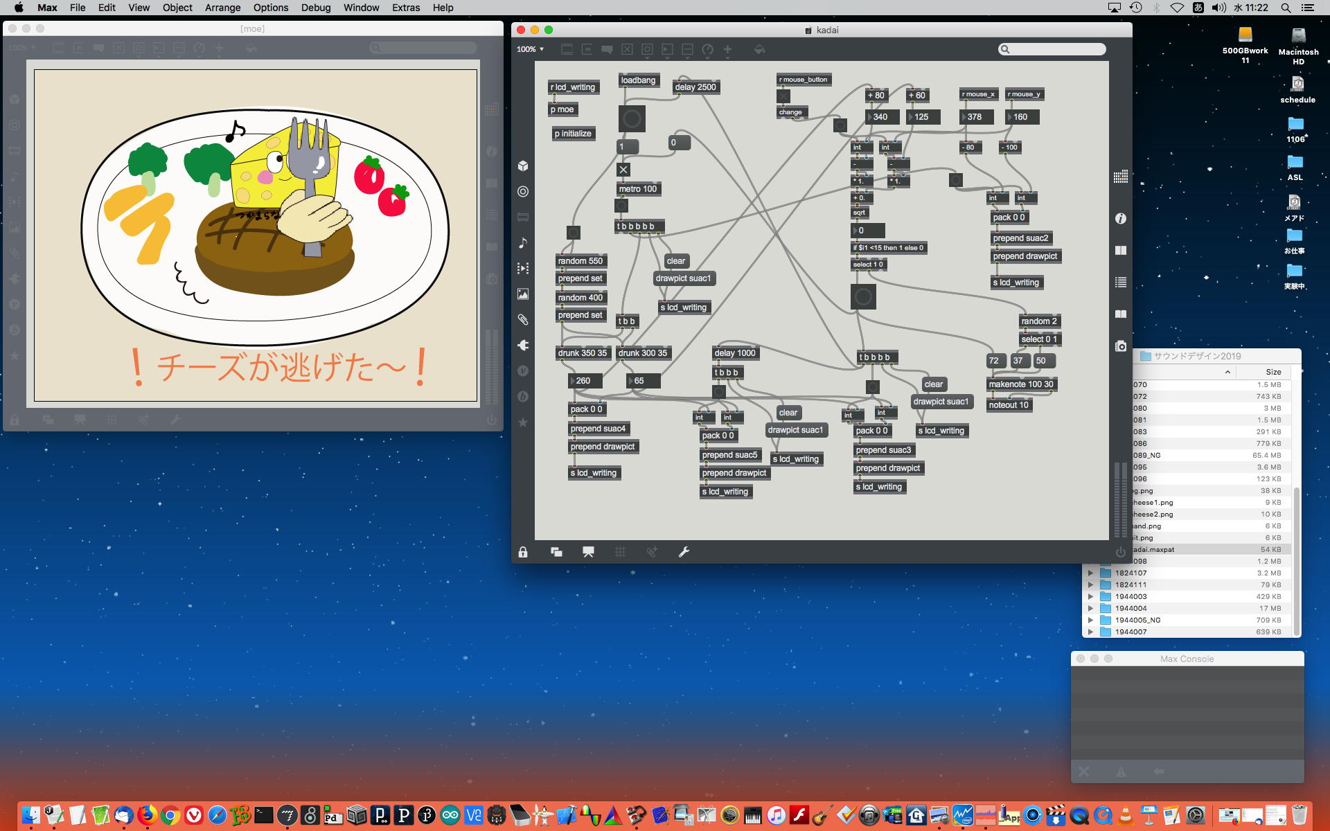 2019年には、 Sketching日記(2) の前日「2019年8月14日(水)」のところで、上のように「サウンドデザイン」課題として学生が制作したMaxパッチ作品の整理紹介をしていた。 この翌年にはCOVID-19によって前期の講義が全てリモートになる・・・なんて事は想像も出来ないのだが、これだけ充実してきたMax教育が翌年に途絶えたのはちょっと残念なことだった。
