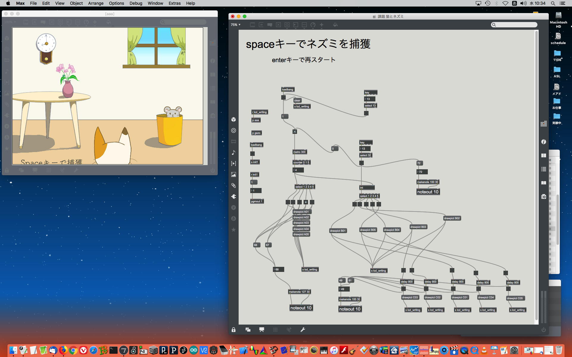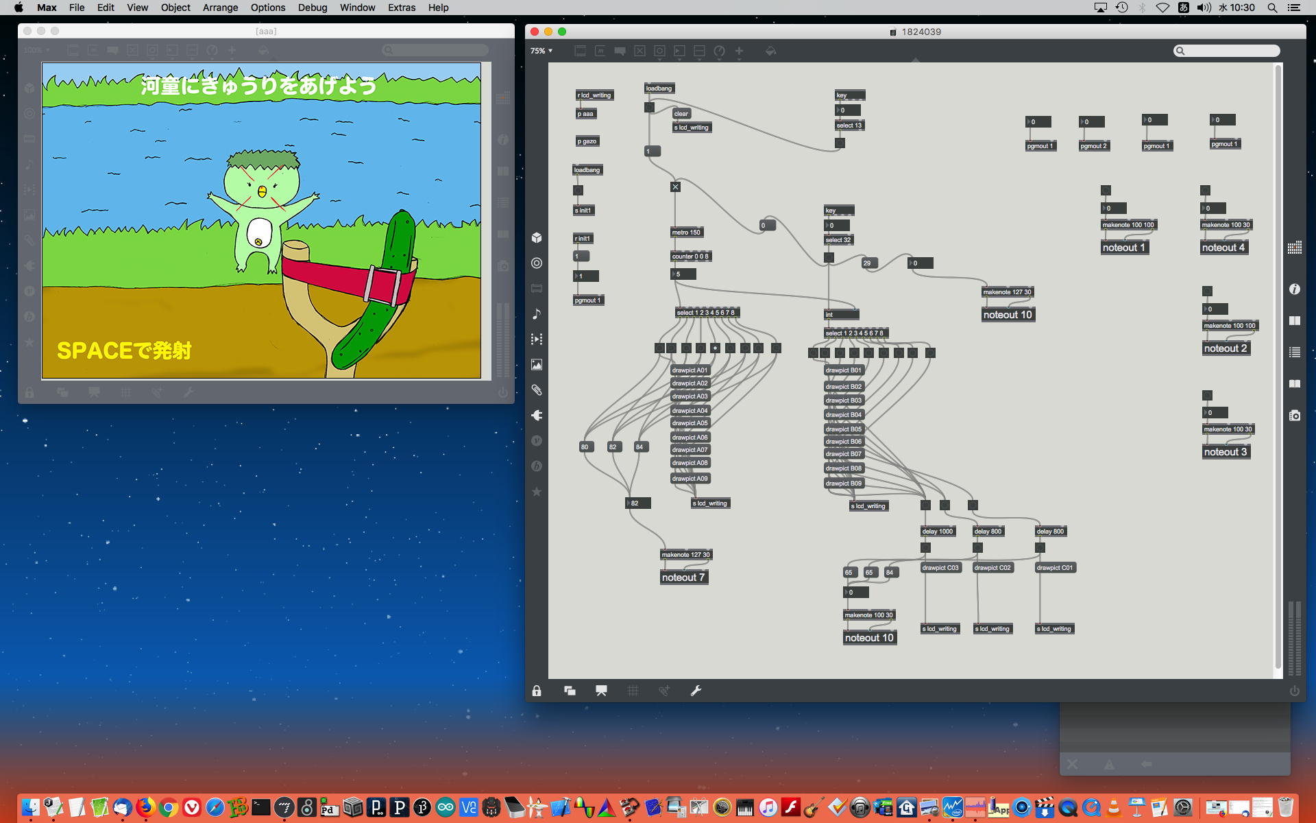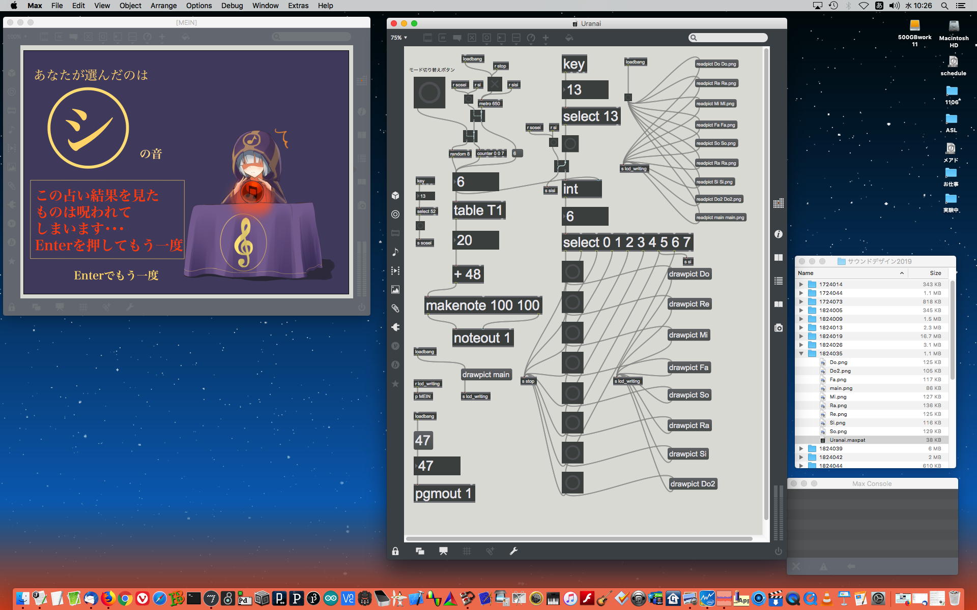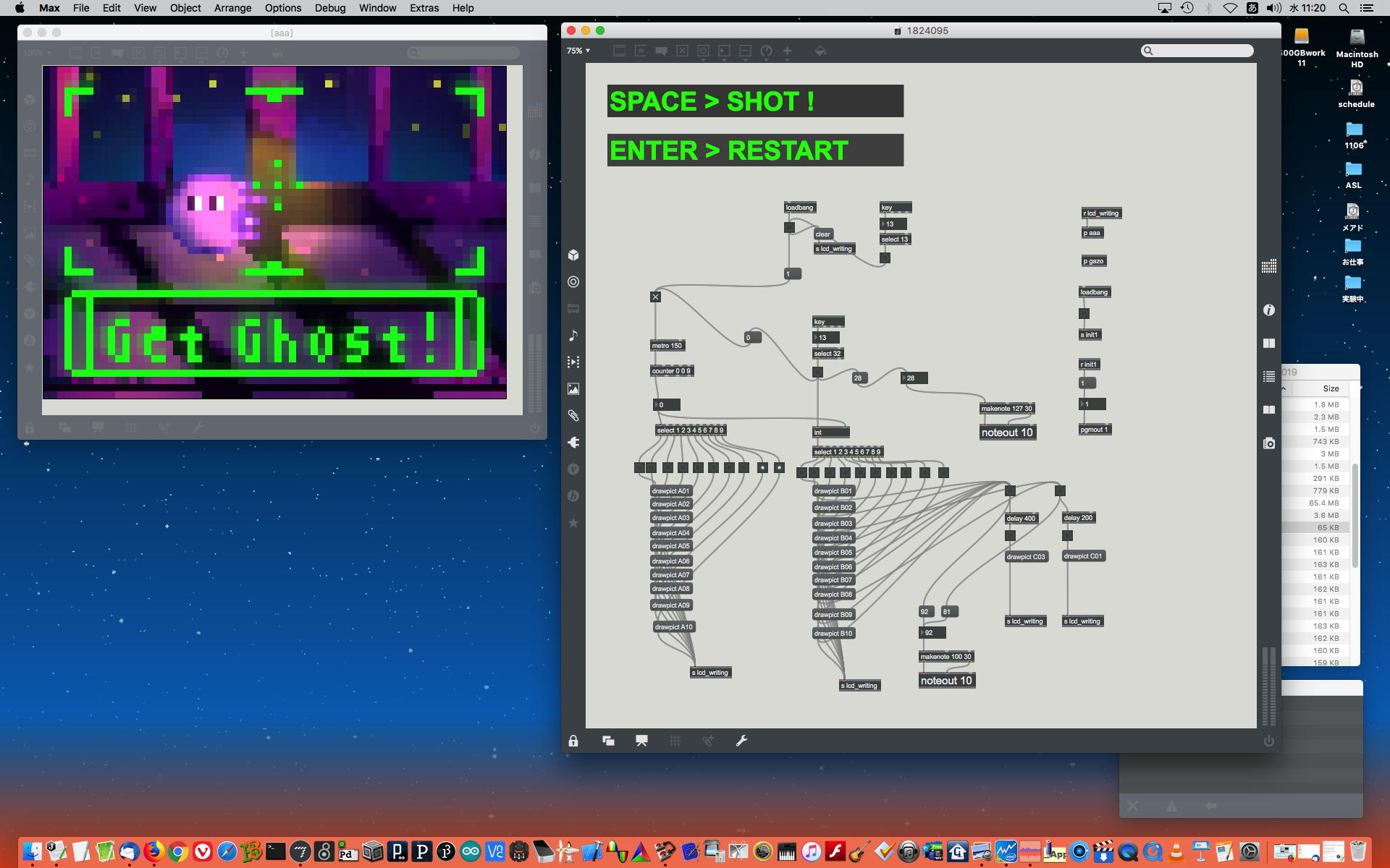2019年には、 Sketching日記(2) の前日「2019年8月14日(水)」のところで、上のように「サウンドデザイン」課題として学生が制作したMaxパッチ作品の整理紹介をしていた。 この翌年にはCOVID-19によって前期の講義が全てリモートになる・・・なんて事は想像も出来ないのだが、これだけ充実してきたMax教育が翌年に途絶えたのはちょっと残念なことだった。