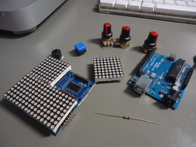 こうなると、今週土曜日のRP1クラスでは、ちょうど「ドットマトリクスLEDの表示」をやるところなので、これを持参して見せるというのはなかなか有効な「教材」となるだろう。 テキストに載っているものを実現するだけでは面白くない、というのは、ジュニアロボット教室でもロボプロ教室でも同じなのだ。