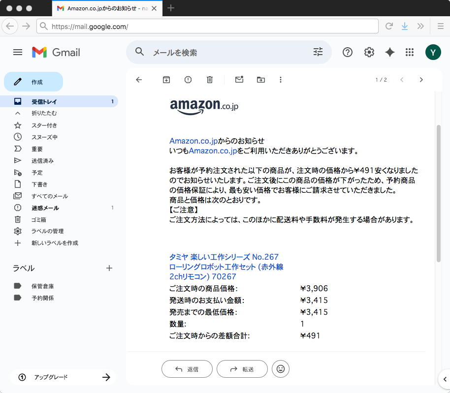 朝イチでAmazonから届いていたメイルは、ちょうど1ヶ月前、10月15日に予約注文していた以下のブツなのだが、これがなんと「注文時の価格から¥491安くなりましたのでお知らせいたします」とのことだった。 今日はロボット教室(ミドル+アドバンス)に出掛ける予定なのだが、上手く進展すれば、帰宅するとガスメーター(配送指定先)にこれが届いていることになった。 Amazonも、ちゃんとやる時にはやるのだなぁ。