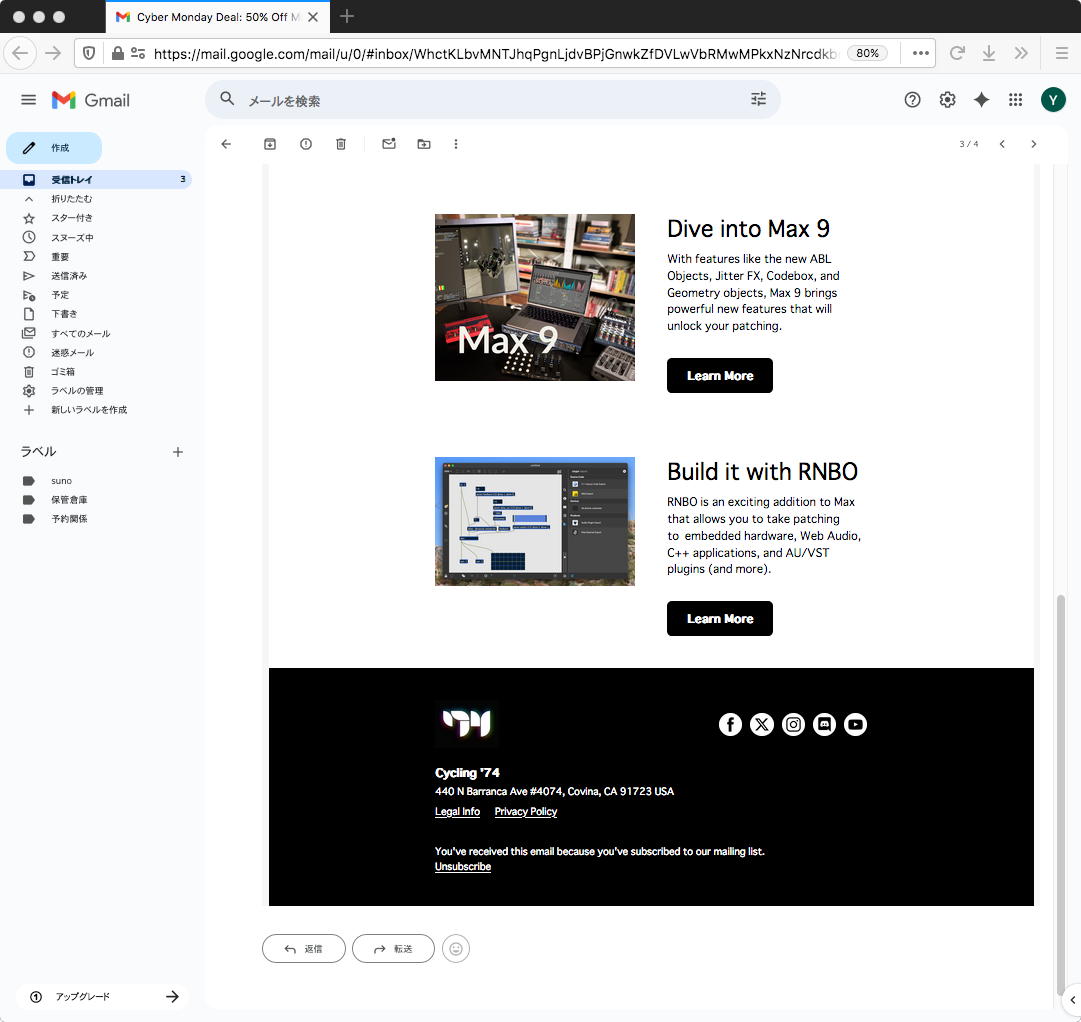 今日も今日とて、KickStarterの新製品広告MLが届くが、けっこう以前に来たものとの重複もあって、なかなかここに取り上げるものは出てこない。 最近の傾向として、「Made in Japan」というのが増えてきていて、ベンチャー以下の「工房」的なプロジェクトが進出しているようだ。 Cycling'74からは「12月1日までのキャンペーンでMax9+RNBOがお安いでっせ!」というのも届いた。