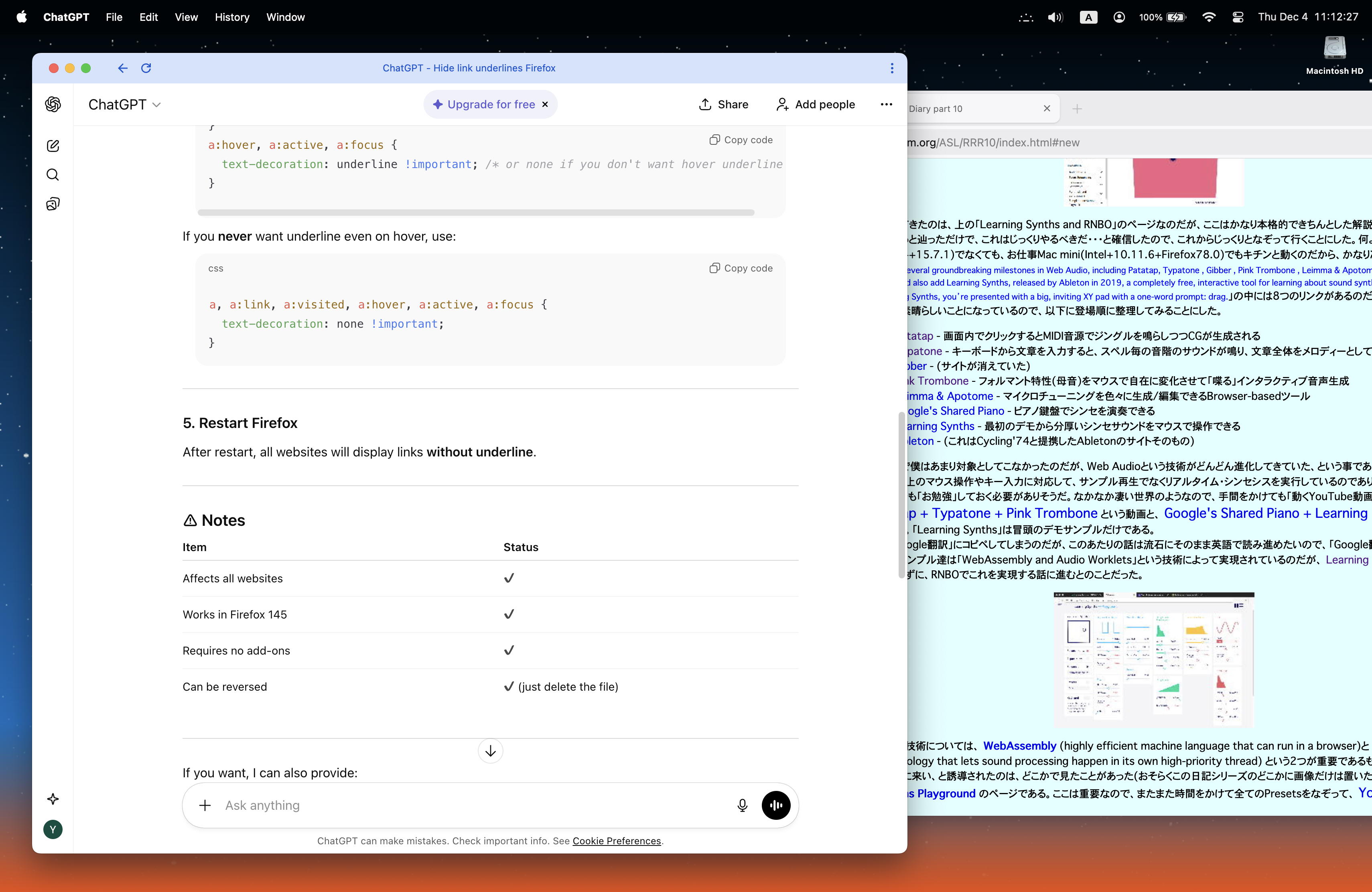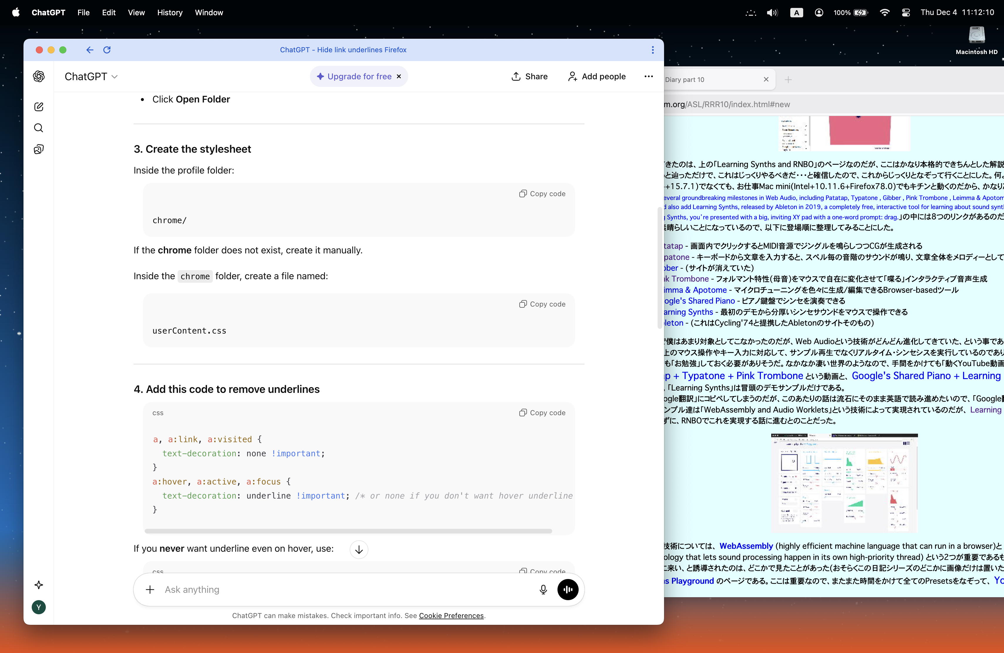 しかしまだまだ壁は続く。 「If have heard about node and npm before but would like to know more about the included npx Package Runner」(ノードとnpmについて聞いたことはあるが、含まれているnpxパッケージランナーについてもっと知りたい場合は)ということで、 Node.js Documentation のページに行って、ザザッと眺めた。 しかしまぁ、これはとりあえずターミナルから入力する「おまじない」と断じて軽くスルーした。Last login: Fri Dec 5 09:20:03 on ttys000 nagasm@YoichinoMacBook-Air ~ % curl -o- https://raw.githubusercontent.com/nvm-sh/nvm/v0.40.3/install.sh | bash % Total % Received % Xferd Average Speed Time Time Time Current Dload Upload Total Spent Left Speed 100 16631 100 16631 0 0 338k 0 --:--:-- --:--:-- --:--:-- 345k You may be on a Mac, and need to install the Xcode Command Line Developer Tools. If so, run `xcode-select --install` and try again. If not, please report this! nagasm@YoichinoMacBook-Air ~ % xcode-select --install xcode-select: note: install requested for command line developer tools nagasm@YoichinoMacBook-Air ~ % curl -o- https://raw.githubusercontent.com/nvm-sh/nvm/v0.40.3/install.sh | bash % Total % Received % Xferd Average Speed Time Time Time Current Dload Upload Total Spent Left Speed 100 16631 100 16631 0 0 75240 0 --:--:-- --:--:-- --:--:-- 75253 => Downloading nvm from git to '/Users/nagasm/.nvm' => Cloning into '/Users/nagasm/.nvm'... remote: Enumerating objects: 384, done. remote: Counting objects: 100% (384/384), done. remote: Compressing objects: 100% (328/328), done. remote: Total 384 (delta 42), reused 181 (delta 28), pack-reused 0 (from 0) Receiving objects: 100% (384/384), 392.50 KiB | 9.34 MiB/s, done. Resolving deltas: 100% (42/42), done. * (HEAD detached at FETCH_HEAD) master => Compressing and cleaning up git repository => Profile not found. Tried ~/.bashrc, ~/.bash_profile, ~/.zprofile, ~/.zshrc, and ~/.profile. => Create one of them and run this script again OR => Append the following lines to the correct file yourself: export NVM_DIR="$HOME/.nvm" [ -s "$NVM_DIR/nvm.sh" ] && \. "$NVM_DIR/nvm.sh" # This loads nvm => Close and reopen your terminal to start using nvm or run the following to use it now: export NVM_DIR="$HOME/.nvm" [ -s "$NVM_DIR/nvm.sh" ] && \. "$NVM_DIR/nvm.sh" # This loads nvm nagasm@YoichinoMacBook-Air ~ % \. "$HOME/.nvm/nvm.sh" nagasm@YoichinoMacBook-Air ~ % nvm install 24 Downloading and installing node v24.11.1... Downloading https://nodejs.org/dist/v24.11.1/node-v24.11.1-darwin-arm64.tar.xz... ##################################################################################### 100.0% Computing checksum with sha256sum Checksums matched! Now using node v24.11.1 (npm v11.6.2) Creating default alias: default -> 24 (-> v24.11.1) nagasm@YoichinoMacBook-Air ~ % node -v # Should print "v24.11.1". v24.11.1 nagasm@YoichinoMacBook-Air ~ % npm -v # Should print "11.6.2". 11.6.2 nagasm@YoichinoMacBook-Air ~ %