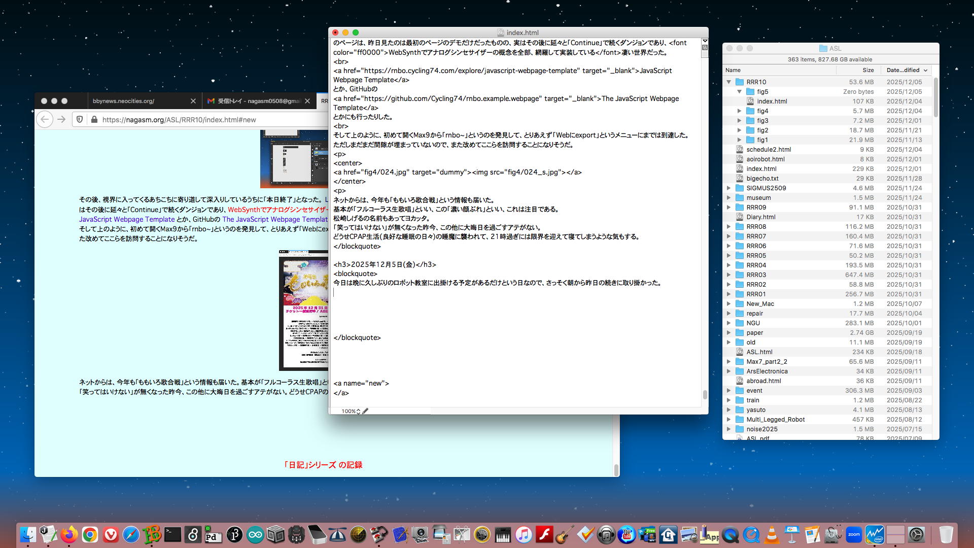 今日は晩にロボット教室に出掛ける予定しかないので、上のように、新MacBookAir(MacOS 15.7.1)にProcessingを入れてみた。 最新のProcessingはVersion4.4.10となっていたが、適当にサンプルスケッチを呼び出すと、ちゃんとライヴ・グラフィクスが走ってくれた。 ウインドウの外見(色)などが変わっていたものの、まぁProcessingのIDEはArduinoと似たようなものなので、操作性は変わっておらず安心した。