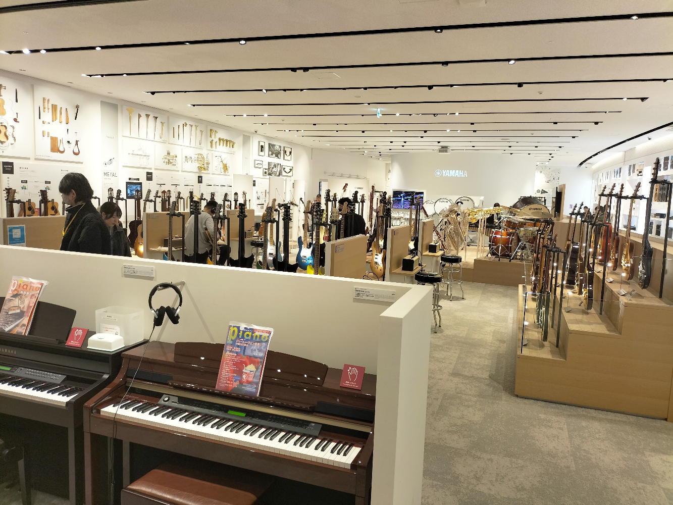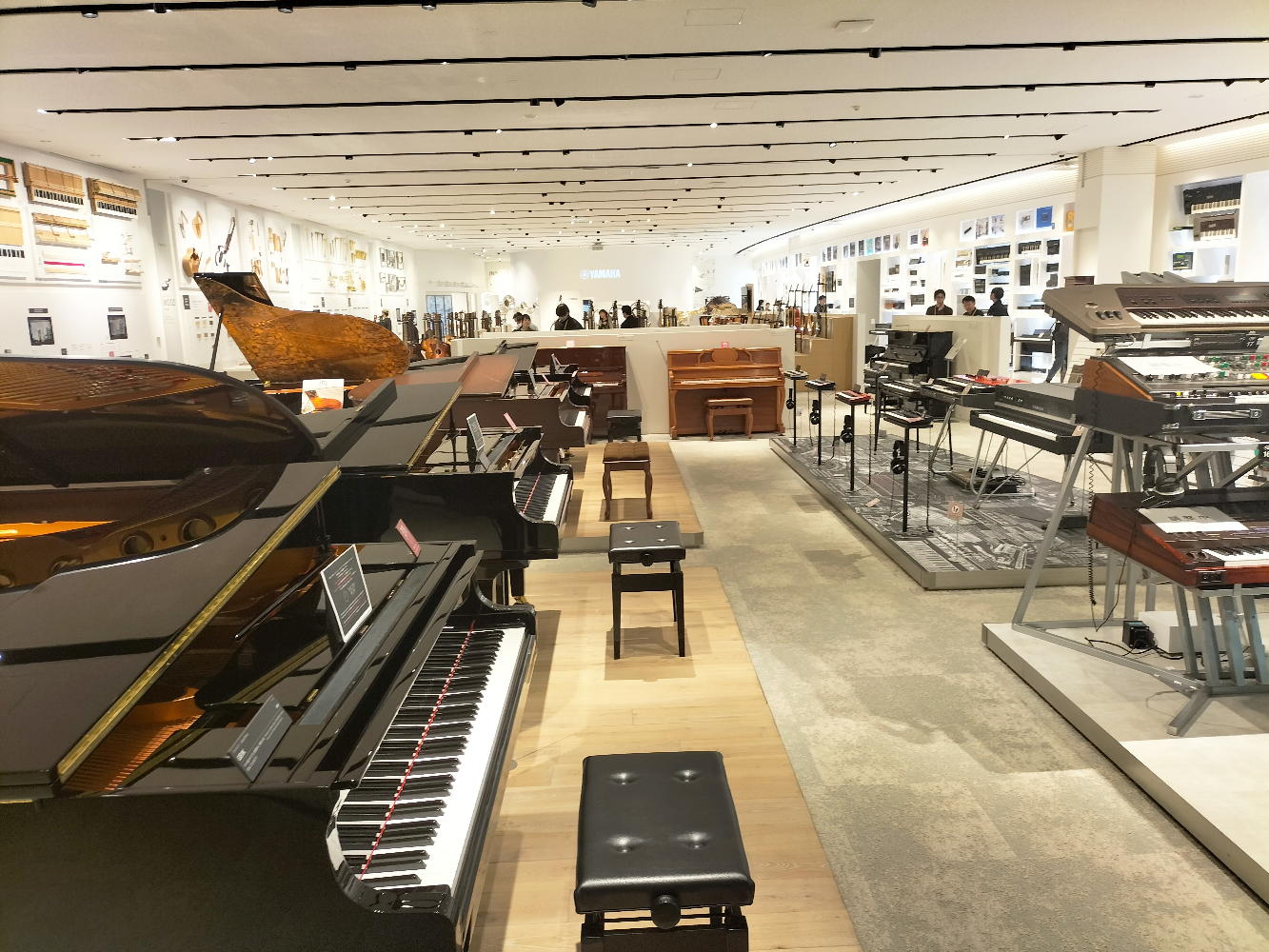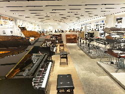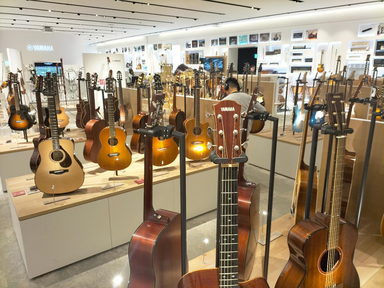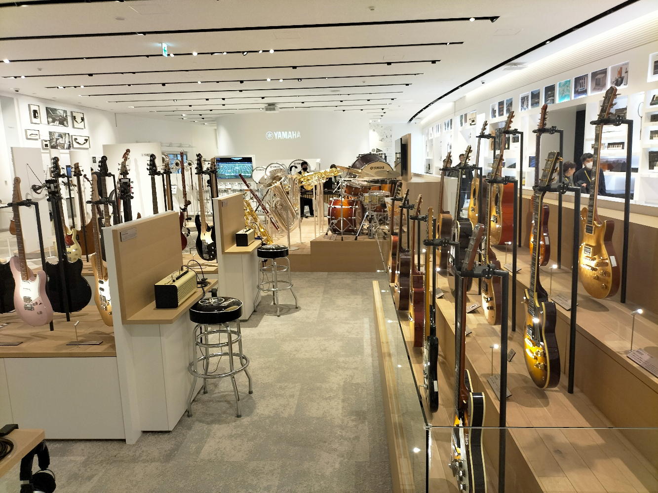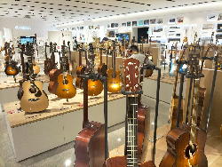 そして上映の合間に「楽器展示エリア」に行き、いつもの週一routineの「Martin弾き」を今回だけはYamahaギターで代用した。 何本ものギターを取っ替え引っ替え弾いてみたが、国産ハンドメイドのフラグシップモデルだという「FG9M」(上右)がまずまずだったものの、当然ながらMartinの足元にも及ばなかった。 当初は「ガイドツアー1時間+自由観覧1時間」という筈だったのだが、我々の団体はガイドツアー無しの「フリー2時間」ということになって、けっこうあちこちをウロウロ出来た。 以下の写真は、退館直前にスマホで撮った、「楽器展示エリア」のスナップである。