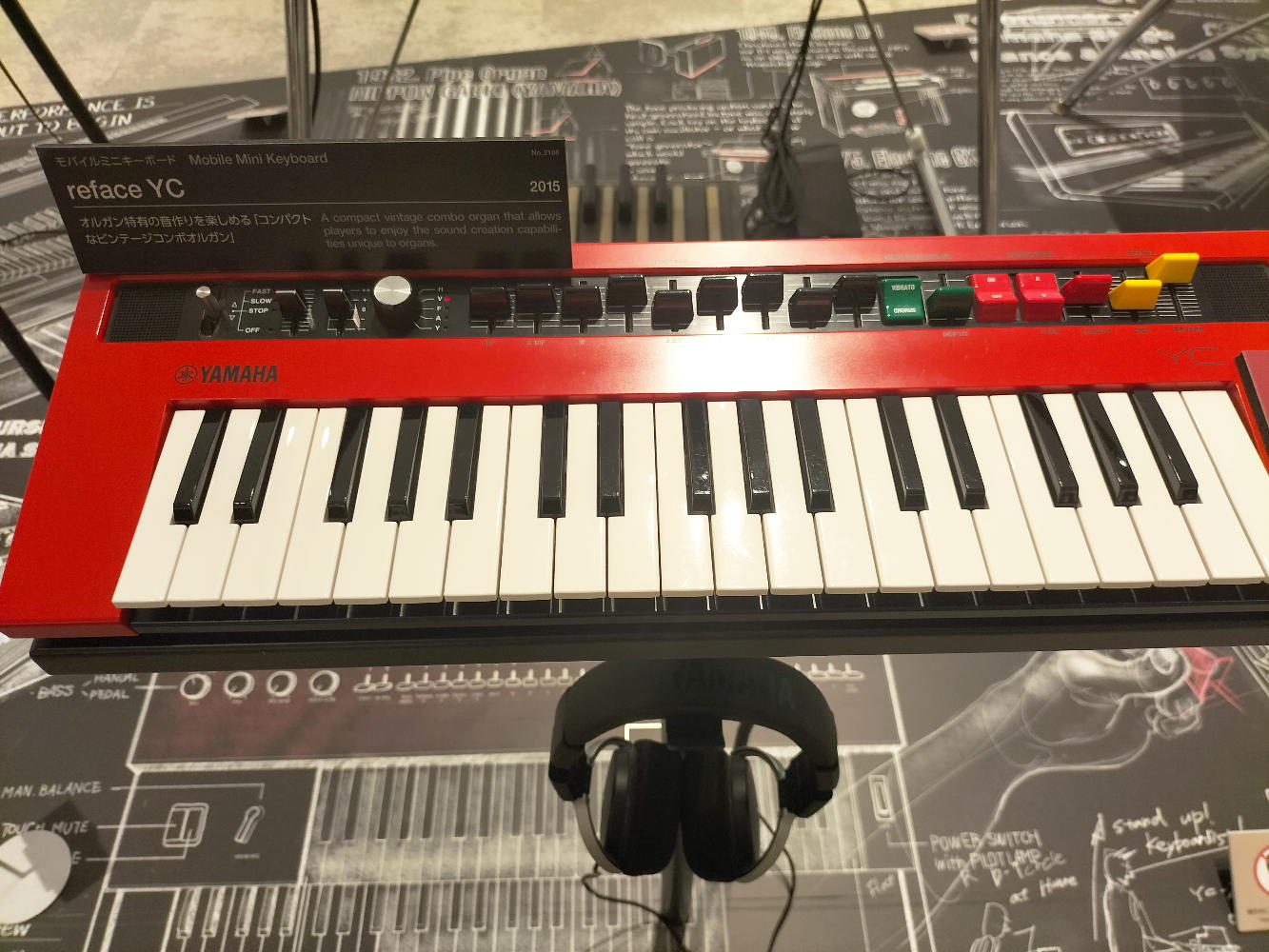 そして、 2018年に行った時 にも以下のようにあったのだが、触れていなかったので知らなかったのが、モバイルミニキーボード reface CP と reface YC である。 refaceシリーズには、あと「CS」と「DX」もあるのだが、こちらは別にソソラレなかったものの、「CP」と「YC」は弾いてみて気に入って、これは帰宅したら中古がヤフオクで出ていないか調べてみよう・・・という気になった。 実際にはまだ製造しているようで、サウンドハウスだと両方とも55000円だった。 なかなか微妙にいい価格設定で、SUAC時代にこれを知っていたら研究費で購入していたかもしれない。