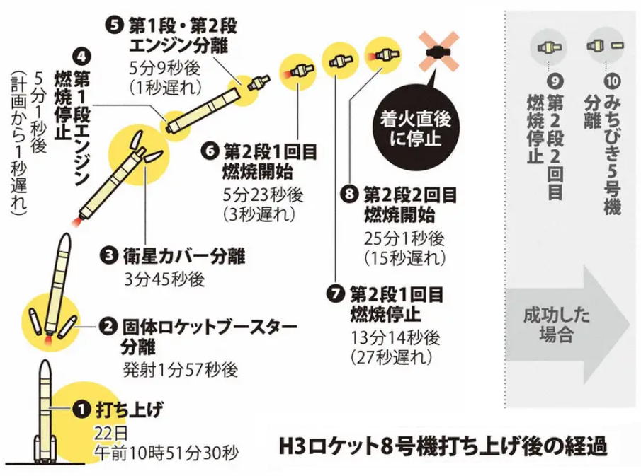 2日前に「打ち上げ17秒前に異常検出で延期」というニュースで嫌な予感がしていたのだが、案の定の結果となった。 かつて「信頼性技術」を技術士としてのネタの一つにしていた身としては、あまりの事に立ち竦むしかない。 これが、現在の、日本の、おそらくほぼ先端の、偽らざる「実力」であるという事実を直視することから始めるしかない。宇宙航空研究開発機構(JAXA)は22日午前10時50分ごろ、H3ロケット8号機を鹿児島県の種子島宇宙センターから打ち上げた。約30分後に準天頂衛星 「みちびき5号機」を軌道投入する計画だったが、第2段エンジンの燃焼が予定より早期に終了し、軌道投入に失敗した。H3は2023年に初号機の打ち上げに 失敗しており、国産主力ロケットの2回目の失敗は日本の宇宙開発にとって大きな打撃となる。政府は対策本部を設置して原因究明を急ぐ。 JAXAによると、第1段エンジンは正常に燃焼を終え、切り離すことに成功。第2段エンジンは2回にわたって燃焼するはずだったが、2回目の途中、ほとんど燃焼 しないまま太平洋上空を飛行中に停止した。燃料の水素タンクの圧力が低下していたことが確認されており、推力も不足していたとみられるという。みちびき5号機 は高度約3万6000キロの軌道に投入される予定だった。ロケットから分離されたか確認できず衛星の状態は不明だが、JAXAは軌道投入できなかったと判断した。 ロケットは当初7日に打ち上げの予定だったが、第2段エンジンに搭載していた誘導制御に必要な装置に不具合が見つかり、17日に延期された。また同日には 地上の冷却注水設備が異常を検知し、発射約17秒前に緊急停止。JAXAは設定が誤っていたことが原因と特定し、22日の再打ち上げに臨んでいた。