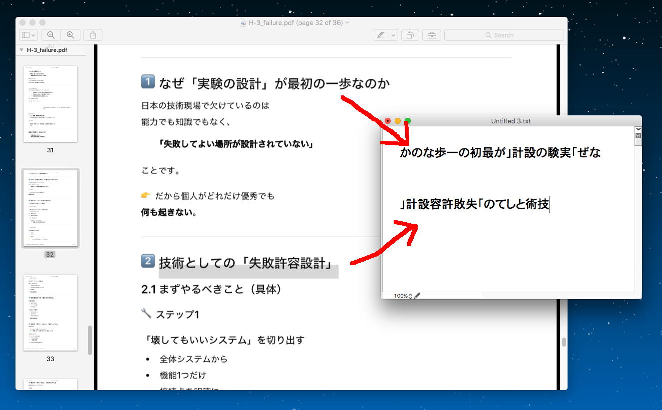 ものの数分で、ChatGPT-4.5との対話の結果は このPDF(全36ページ,18000字) のようになった。 面白いのは、ChatGPTとのやりとりを「プリント」機能で簡単にPDFに出来るのだが、その一部をこの日記にコピペしようとしてみると、以下のように、なんと「全ての文字が逆順に並ぶ」などして、安易なコピペを阻んでいるところだった。