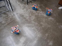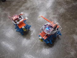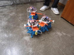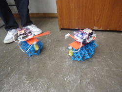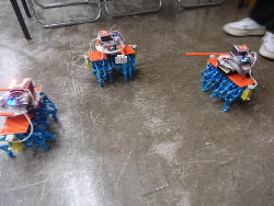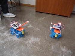 そして午後のロボット教室(ロボプロ1年目)では、6回シリーズの最終回として、完成したロボットによる「バトル大会」で盛り上がった。 上はその一部の写真なのだが、プレステのリモコンでなかなかに燃える大会となった。 デジカメで撮った動画を連結した YouTube動画 は、切れ切れであるものの、なかなか楽しいものになった。