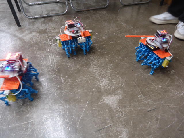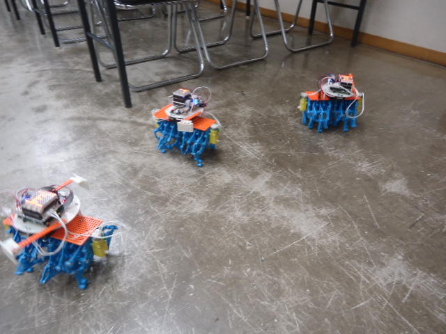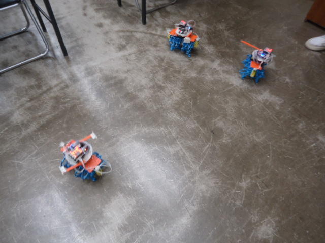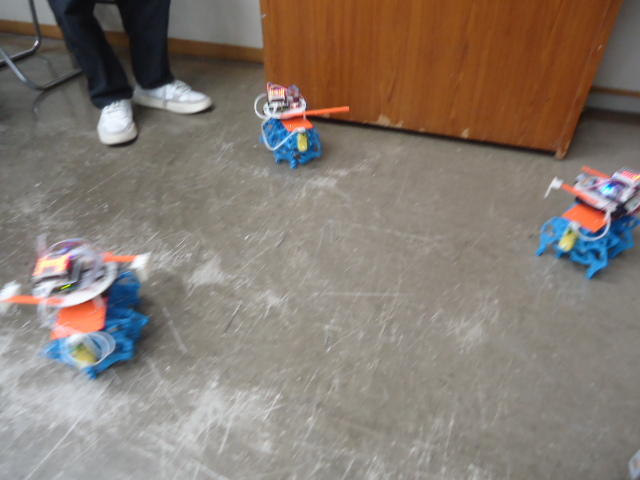 そしてロボット教室に行って、無事に生徒のロボット制作が進むように支援した。 自分のサンプル教材のプログラミングは教室の合間に行ったが、今回のものは「リモコンで操縦するだけ」ということで、一発で動いた。 YouTube動画 のように、なかなか可愛い動きなのだった。