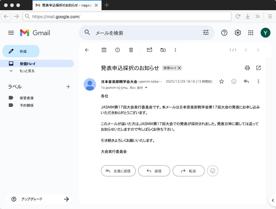 これまで漠然と構想していた内容を上のようにまとめて、来年2月に日大で開催される「日本音楽即興学会 2025年度第17回大会」への発表応募として出してみた。 具体的なEXPO2025の報告は ここ にあるのでそこはパスして、あのEXPOイベントそのものが、行き当たりばったり(「高校の学園祭みたい」と言われていた)の運営だったところを「即興」と捉えての発表としてみたい。「成り行き即興」と「作り込み即興」についての考察 ー EXPO2025に参加して ー 情報処理学会・音楽情報科学研究会において、「EXPO2025プロジェクトに参加して」というタイトルで報告した★(https://nagasm.org/ASL/SIGMUS2509/)。 本発表では、この体験(詳細は報告★を参照のこと)を契機として再発見することになった、即興における対極的な特性 : 「成り行き即興」と「作り込み即興」に注目して 考察した事項について報告すると共に、即興の本質に関する問題提起を試みる。 筆者がこれまでComputer Musicの領域で行ってきた作曲/公演活動において、即興性を「環境として作り込む」ことは公演を事故なく成立させるために不可欠であり、 個々の音楽要素を即興的にライヴ生成するアルゴリズムにしても、演奏者の即興的身体表現のセンシングにしても、音響/映像を聴衆に提示するシステムにしても、 事前に十分に作り込んで会場に持ち込み、トラブルに対する安全装置を二重三重に準備することは常識だった。いわば「お釈迦様の掌の空間内で即興する孫悟空」と いう世界観である。 一方、成功裏に終わったと言われる大阪万博2025において筆者が参加した「伝統文化未来共創Project(The Future in Tradition)」の中の「伝統の中にある未来 ー Japanese Experience ー」など多くの企画については、公演の「場」としてのパビリオンは建設し割り当てられたものの、時間的・運営的・財政的などの要因から個々の 公演内容の準備は直前まで不透明なまま当日を迎えた。これは従来手法での即興の実現というよりも、「場」そのものの存在や運営が即興的という対極的な皮肉となり、 関係者を翻弄した。この貴重な体験から「成り行き即興」と「作り込み即興」という視点、「どんな時でも揺るがない即興」について体験した事例を報告すると共に、改めて 即興について見つめ直してみたい。2025年11月4日(火)