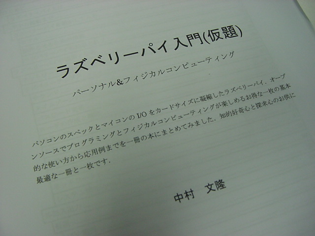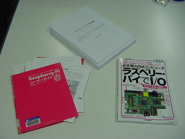 以下の写真は、手元にあるRaspberry Pi関係の3冊の書籍であるが、分解したインプレスの本とCQ出版の本と並んでいる260ページの分厚い原稿は、まだ某出版社から出版される前の、ふーみんが執筆した「Raspberry Pi本」の校正前原稿である。 この本が出版されれば、日本のスケッチング業界でもまたRaspberry Piが大騒ぎになる事は確実であるが、この内容をテストユーザとして追いかけてみる、というのが、この「日記」のユニークなところになるかもしれない。 もちろん、たった4.6MBのPDFであるが、ふーみんの生原稿はここでは紹介できないので、あしからず(^_^;)。