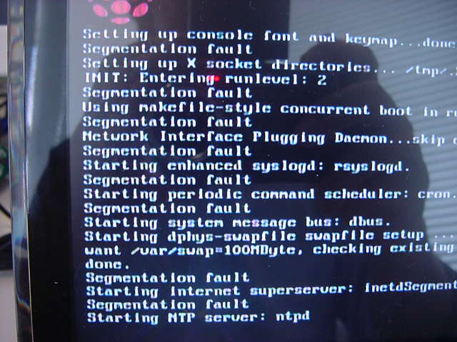 Raspberry Piが立ち上がるいつもの画面で「segmentation error」が連発し、立ち上がったものの、「ifconfig」をしてもIPアドレスが表示されない。 2度試しても同じ、というところで、「こりゃLinuxのファイルシステムが壊れた」と断定した。 幸いに、いくつものSDカードに最新のシステムを入れていたので、たぶんRaspberry Pi自体は壊れていないと想定して、SDカードを新しいものに交換して立ち上げると、無事にきちんと立ち上がった。 そしてここから、とりあえずtelnetdはパスして(^_^;)、精選した以下のコマンドを入れた。 実際には「sudo apt-get install debian-edu-archive-keyring」の最後に何か言われたので、そこで「sudo apt-get upgrade」をしてから再度「sudo apt-get install debian-edu-archive-keyring」とやったらOKとなり、あとはVNCだけ入れてみた。 そして最終的に全て何のエラーもなくパッケージのインストールやアップデートが成功した。