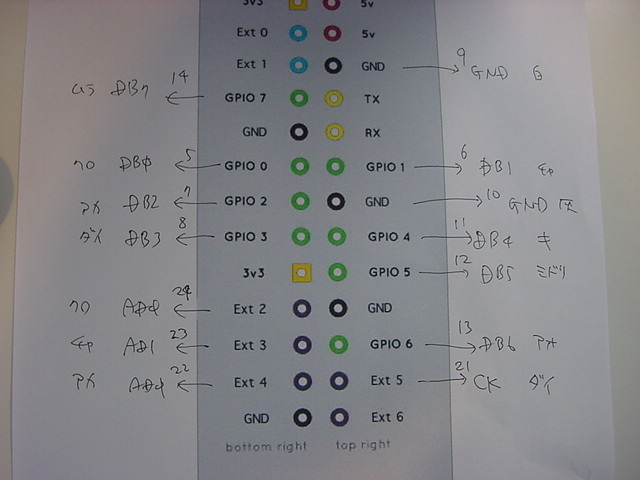 - Raspberry PiのEXT2(LSB)からEXT4(MSB)の3ビットで、8個の574をセレクトするアドレス(0-7)を形成