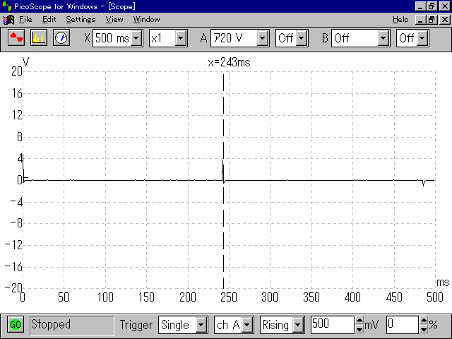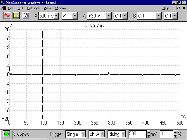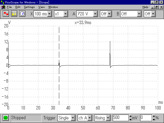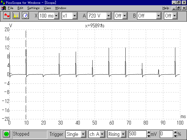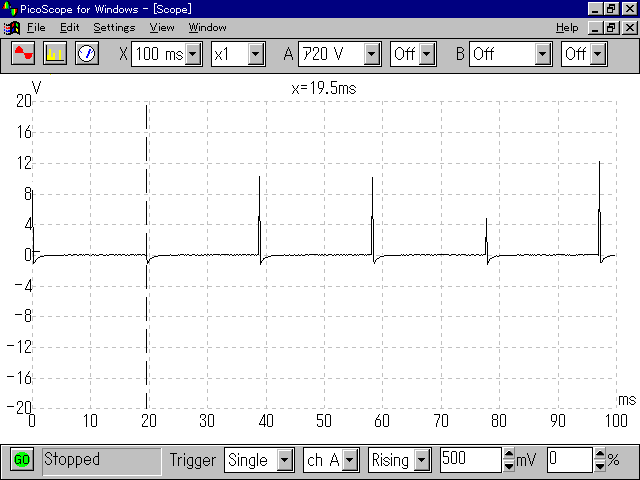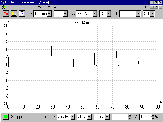 図2および図3のように全てパルス幅が約1msecで均一であり、さらに一定時間ごとに正と負の