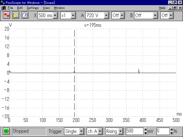 以下は、市販の低周波治療器(OMRON製「エレパルス」)の実際の出力電気信号を計測した例である。