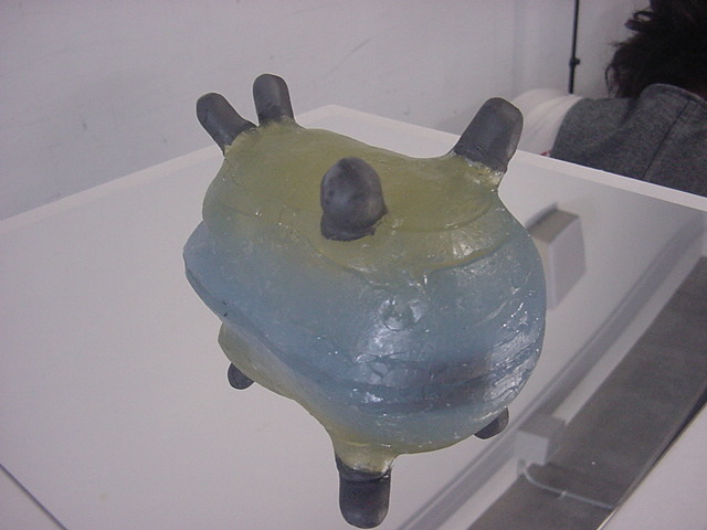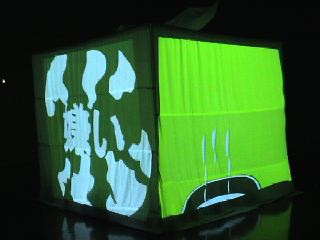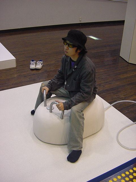 The title HikaBeko means lighting cowfish. This object is made of soft jerry material. This object generates slow changing lights from inside. There are four horns on it, and when people touch it, then fast flashing light appear from inside.- System