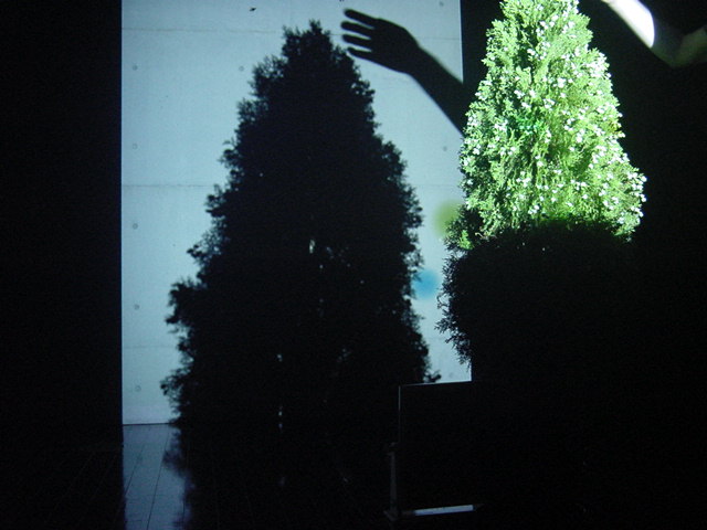 The title of work HOUJU means "jewels tree". People touch the shadow of the tree, then many bright patterns appear inside of the shadow of the tree.- System