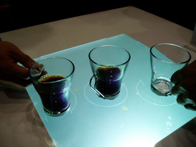 On the table, it is divided into 64 areas. When people puts the glass object, a different sound is generated for each place.- System