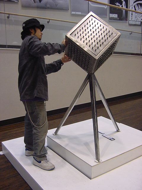 This work is composed of five boxes. There is a round eyehole in each box, and when people looks it into, "Happiness" is found respectively. Only one box appropriates the ear and hears the sound of "Happiness".- System