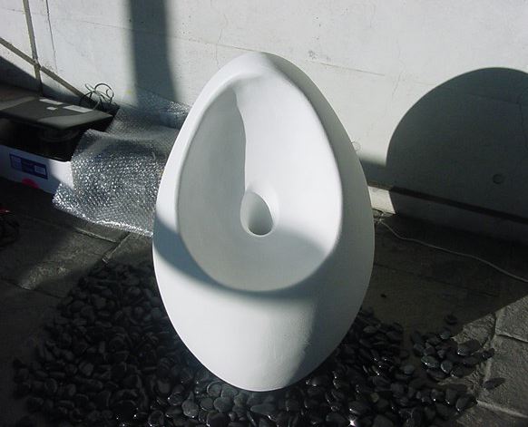 The center of the forming object (fiberglass + epoxy resin) punctures, and there are a lot of small stones in the surroundings. People can throw a small stone into this hall. Then guitar sound rings and an internal lamp shines, light leaks and goes out to the outside through forming.- System