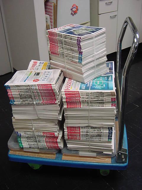 札幌出張前日である。 フト思いたって、朝イチで このように 1106研究室の棚をかなり占めていた「1991年以来の『トランジスタ技術』誌」を、2012年まで一気にまとめてゴミ出ししてしまった。 「3年間、触れていないものは捨てていい」という断捨離の理論に従って、3年どころか10年も15年も触れていないので、もう捨てていいだろう、と覚悟を固めたのだ。 要するにオープンソースの時代となって、デバイスもデータシートも技術情報も全て、ネットでタダで入手できる時代なのだろう。 二束三文でヤフオクに出してもいいのだが、梱包と発送が面倒なので断念バーグした。